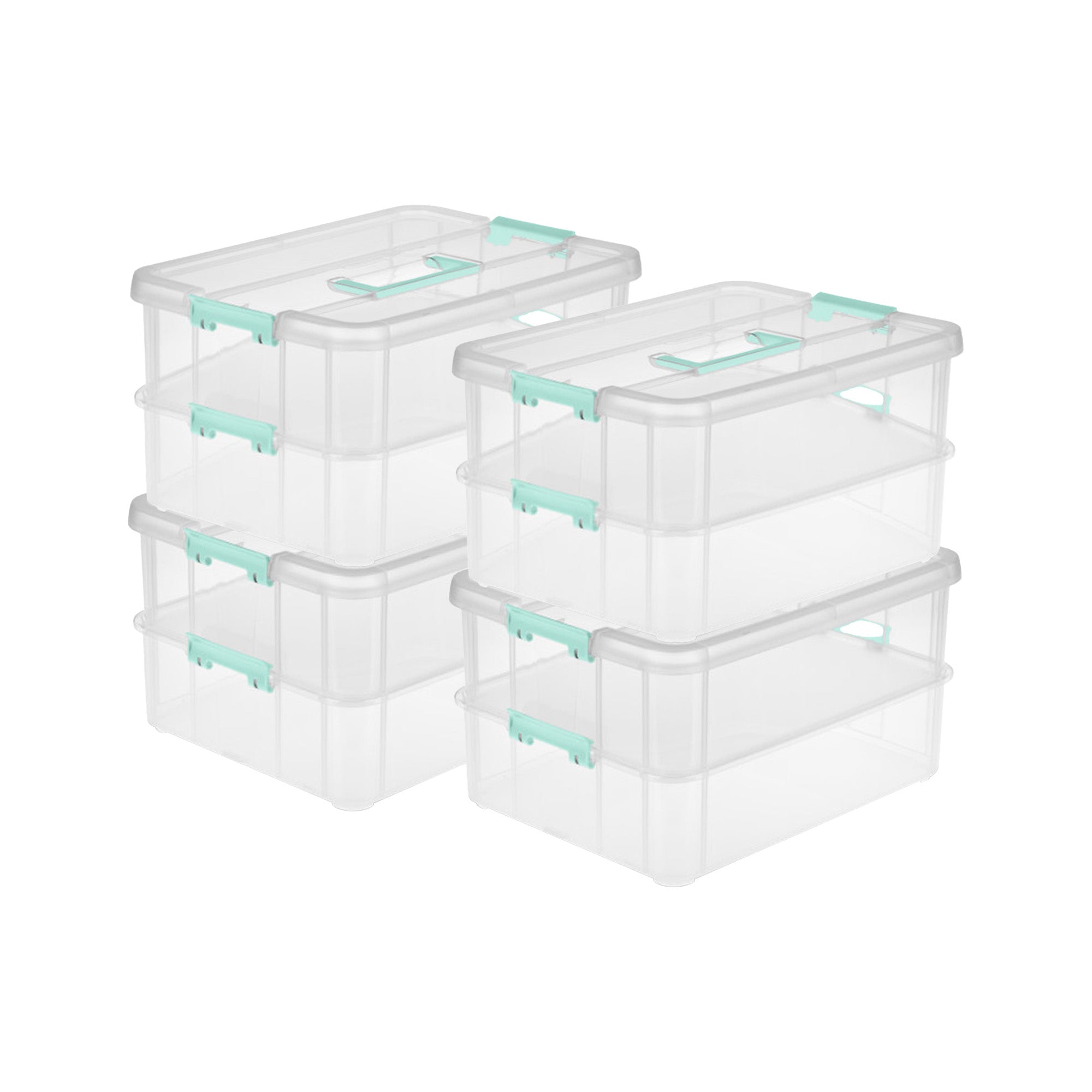 Make your life easier with the 4-pack Sterilite Convenient Home 2-Tiered Layer Stack Carry Storage Box.