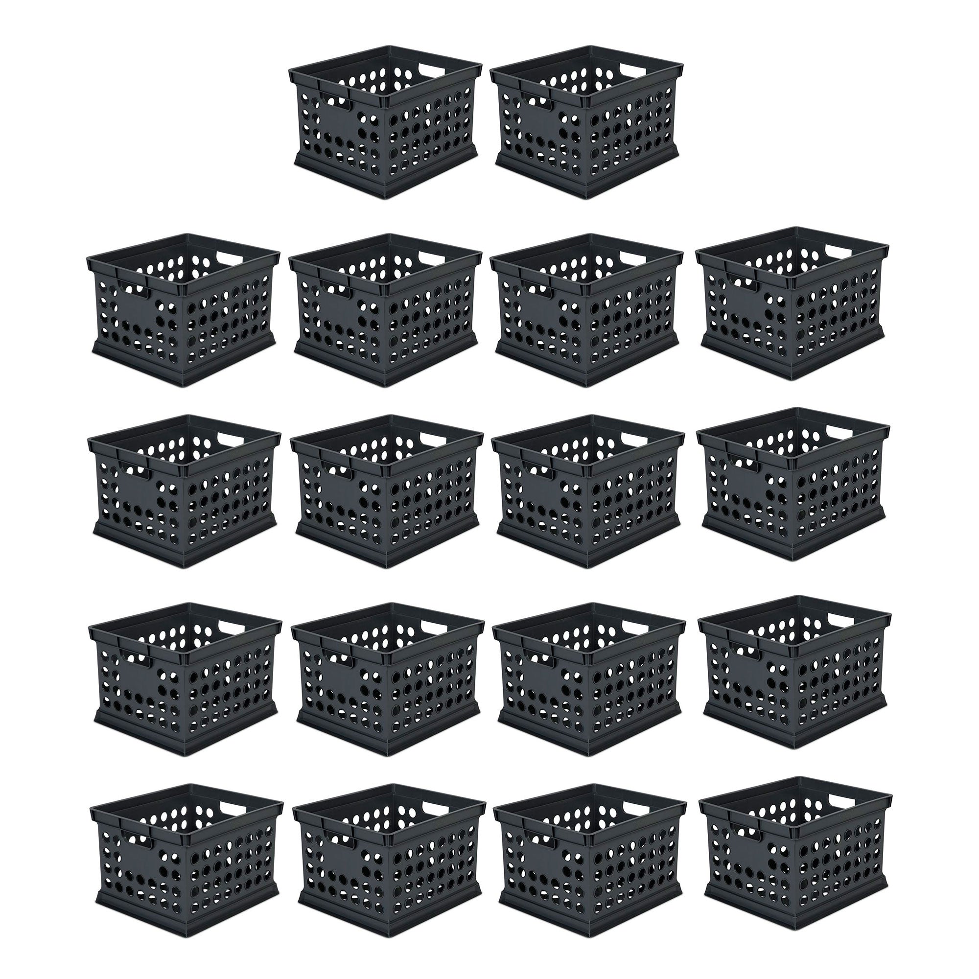 Great for a variety of uses, organize your room with compact and easy-to-move boxes. De-cluttering your space with the 18 Sterilite Stackable Crates and customize your storage area to suit your needs.