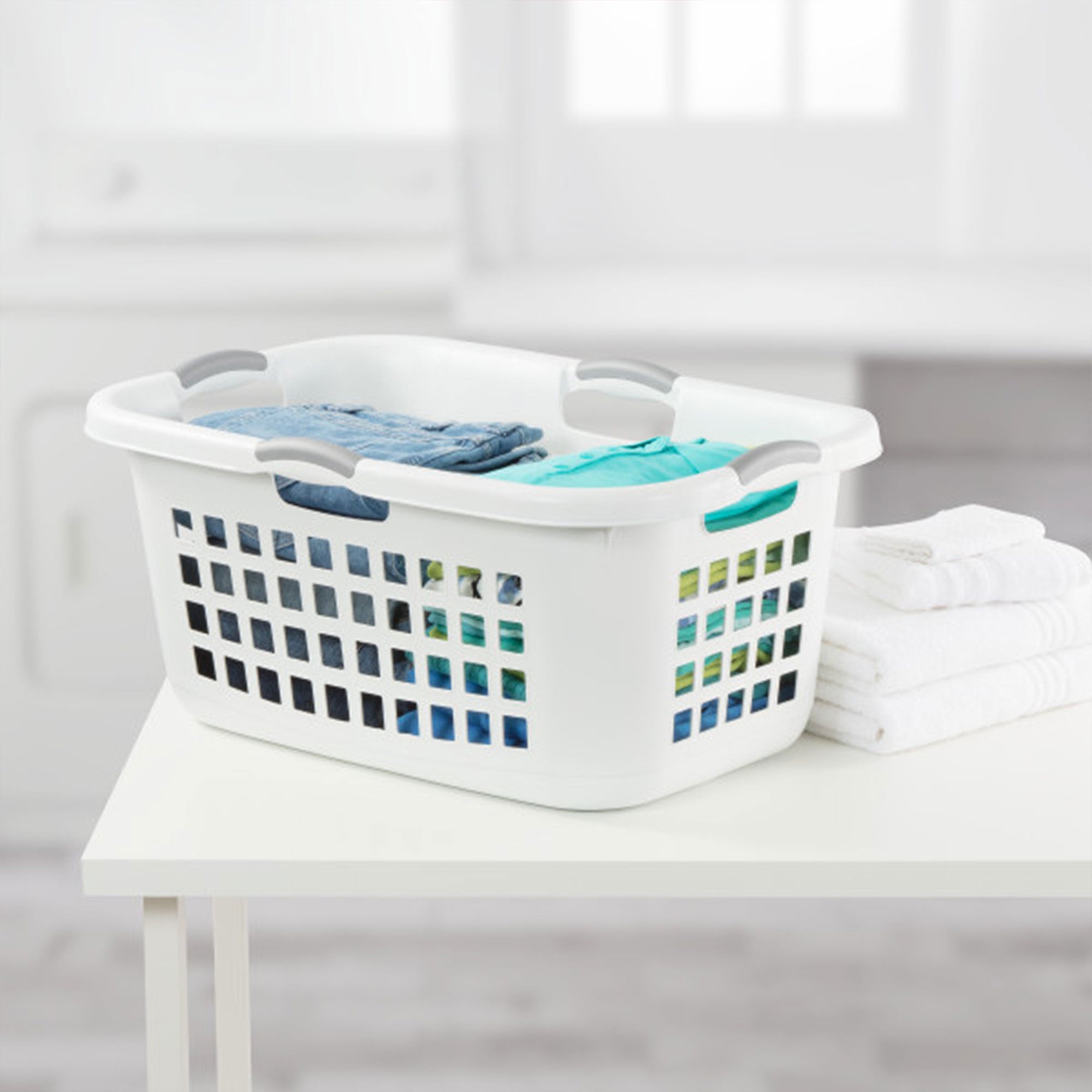 - Generous 2-bushel (71-liter) capacity great for carrying, sorting, and folding large amounts of clothes, towels, and sheets