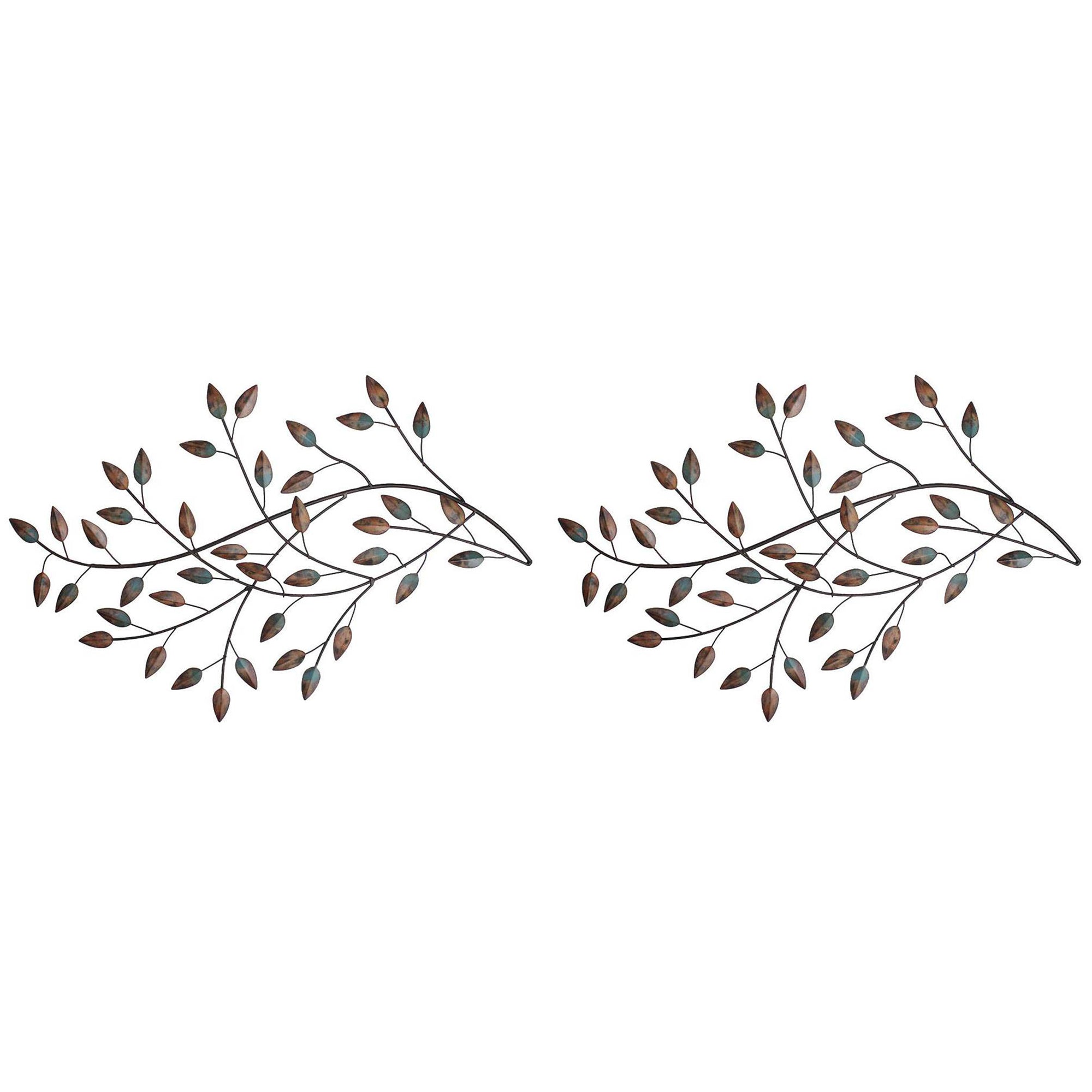 Add an elegant but botanical touch to your home with the 2-pack Stratton Home Decor Blowing Leaves Wall Art.