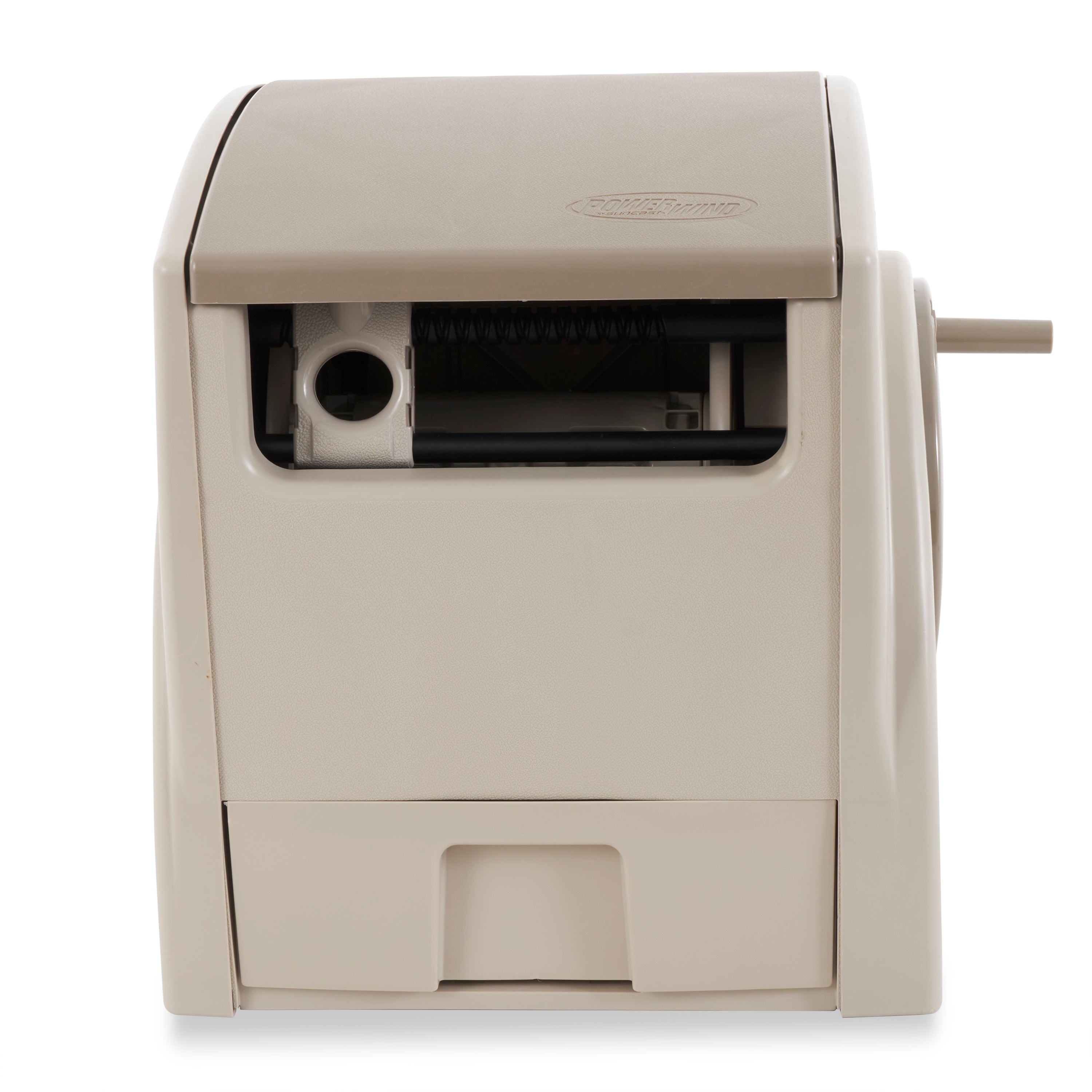 - Holds 100 feet of 0.63-inch standard vinyl hose