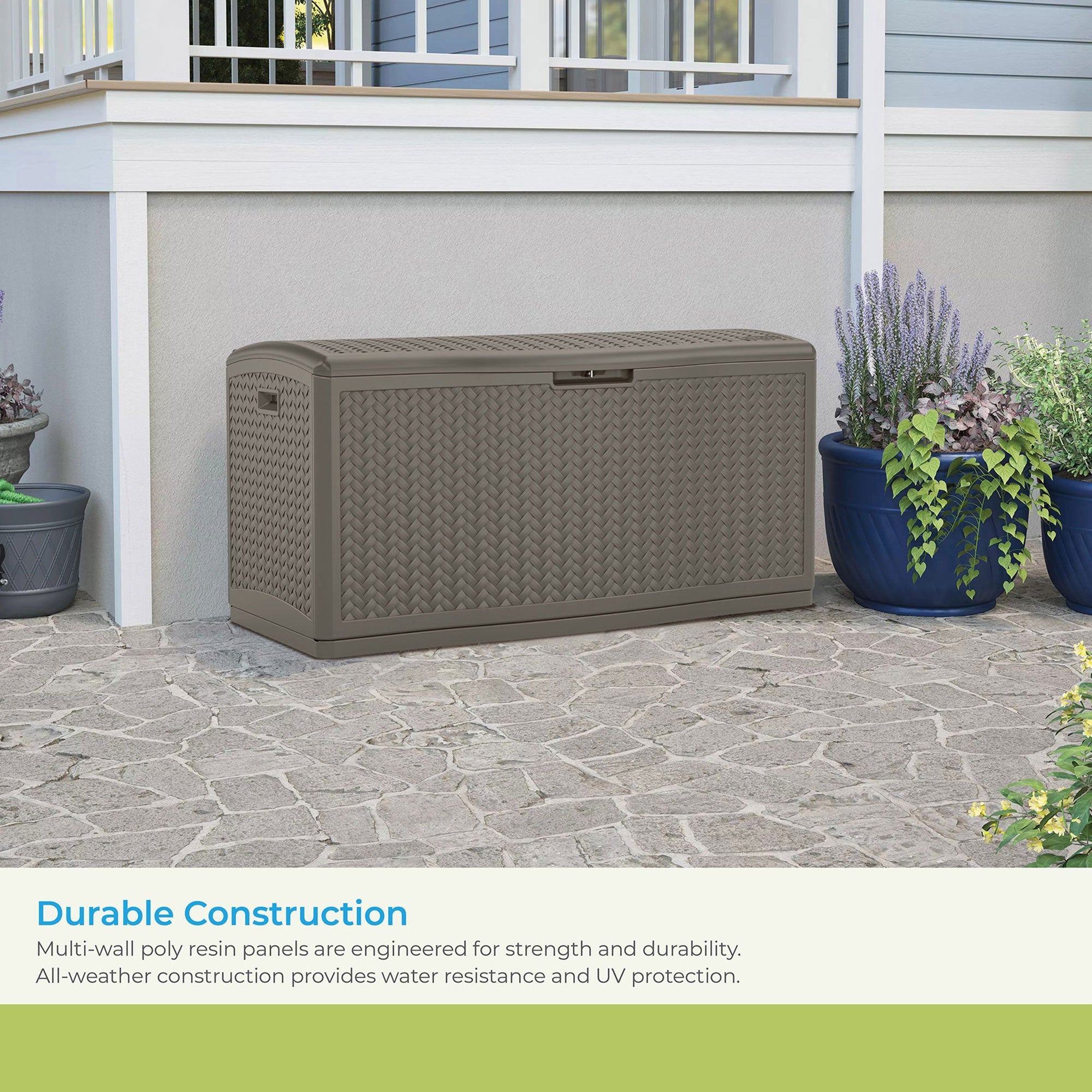 Suncast 124 Gallon All-Weather Outdoor Herringbone Storage Deck Box, Stoney