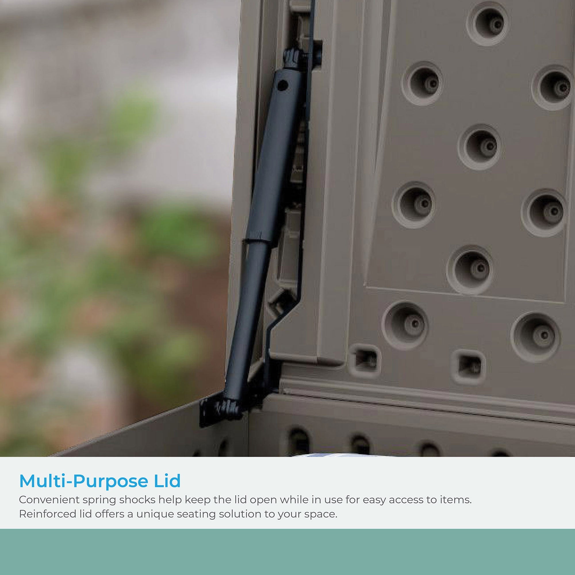 Say goodbye to clutter and welcome a new era of organization and style. Designed to surpass your storage needs, this extraordinary deck box offers an impressive 124-gallon capacity to hold all your outdoor essentials in one convenient place. Whether patio cushions, gardening tools, or pool supplies, this deck box has room for it all.