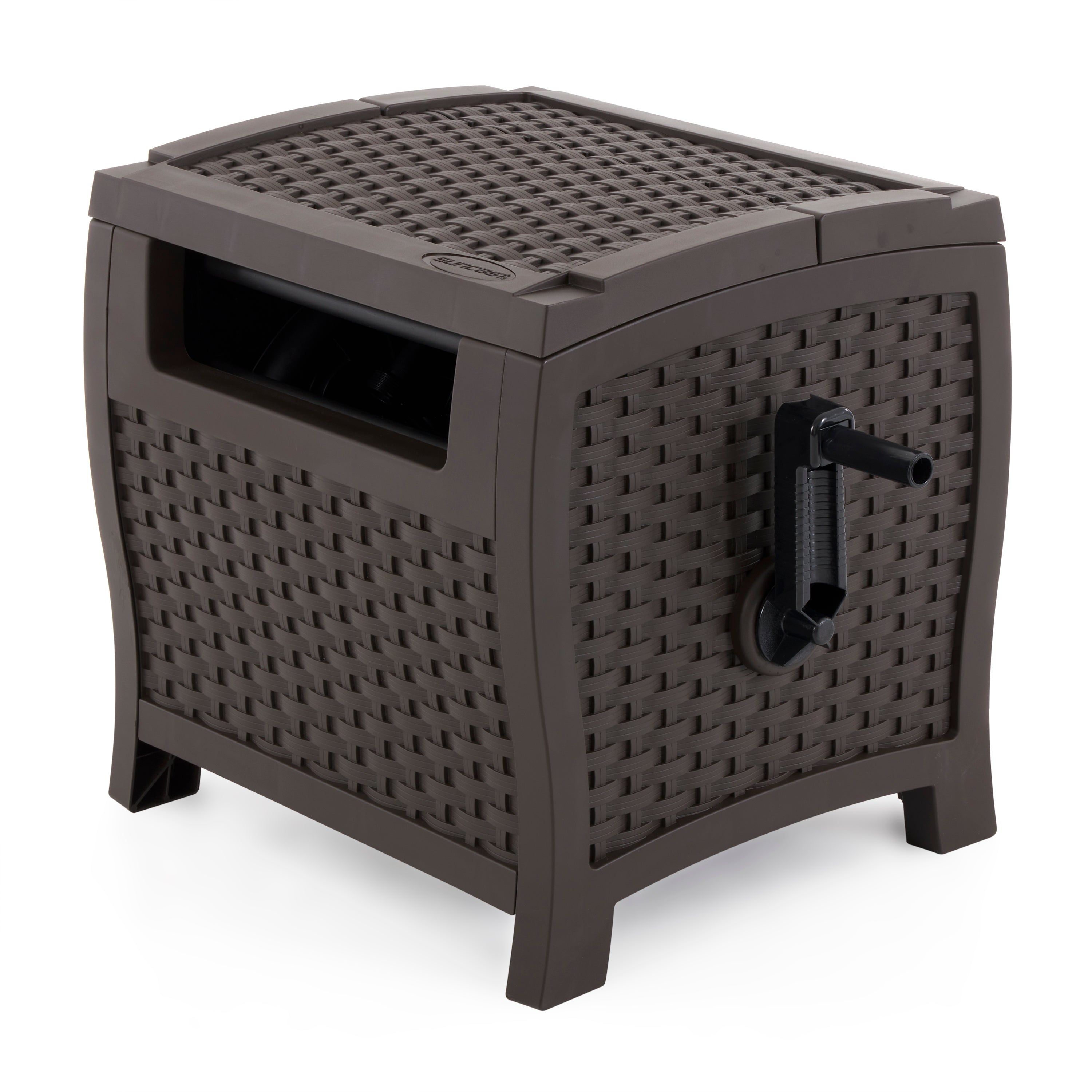 Bypass the mess and keep your water hose organized and your reel out of sight with this stylish hideaway. It's built with sturdy, high-quality resin and can hold up to the outdoor elements. It holds a whopping 175 feet of 5/8-inch standard vinyl hose capacity, meaning you can do more with a longer hose. Best of all, no tools are required considering it arrives fully assembled!