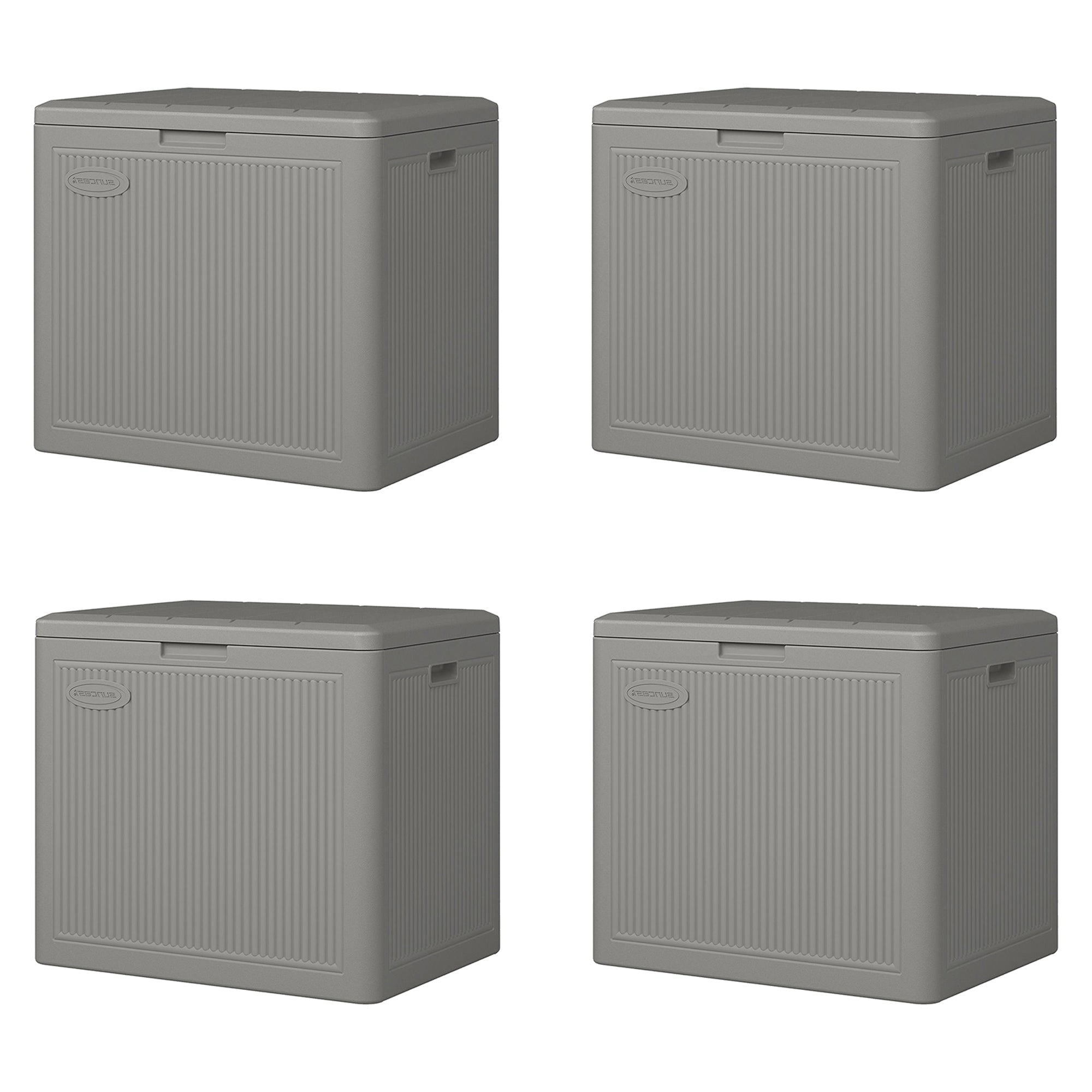Suncast 22 Gallon Indoor Outdoor Small Patio Deck Storage Box, Stoney (4 Pack)