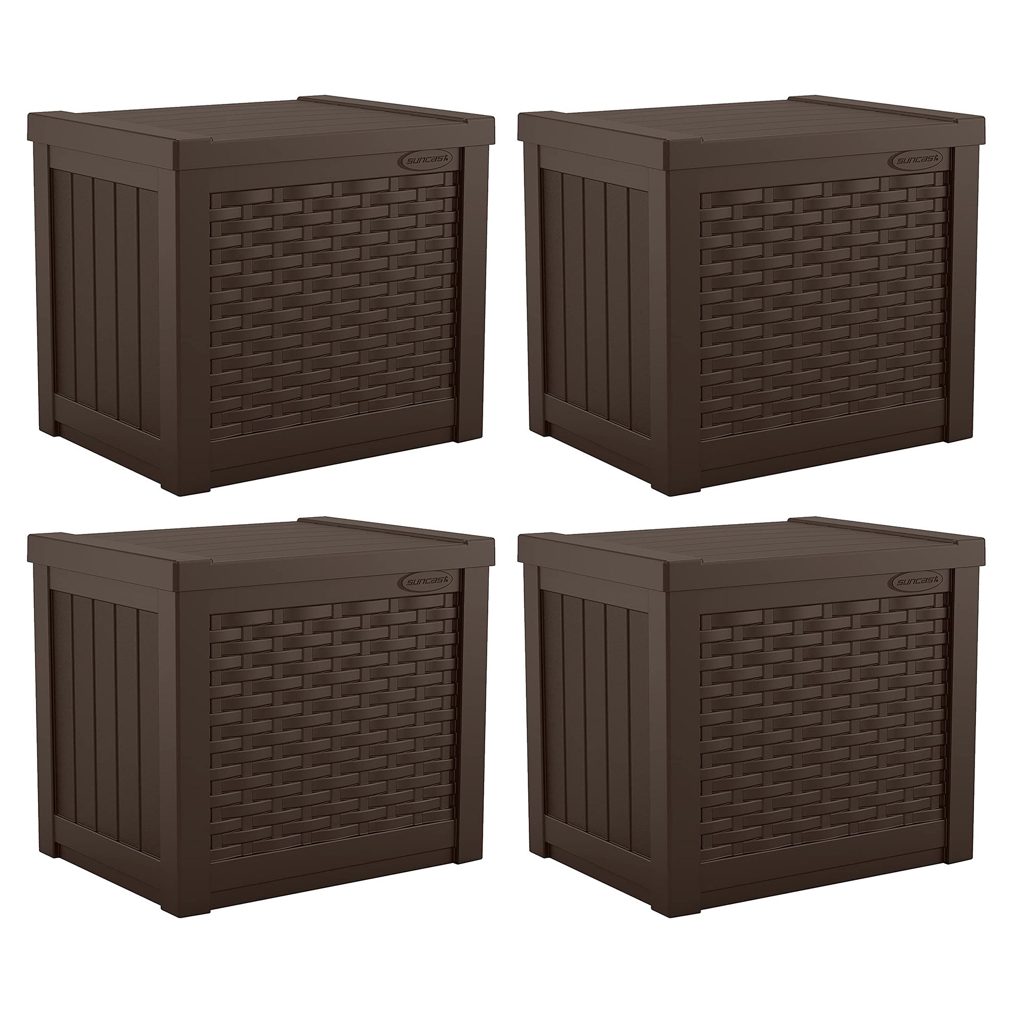 Suncast 22 Gallon Outdoor Patio Small Deck Box with Storage Seat, Java (4 Pack)