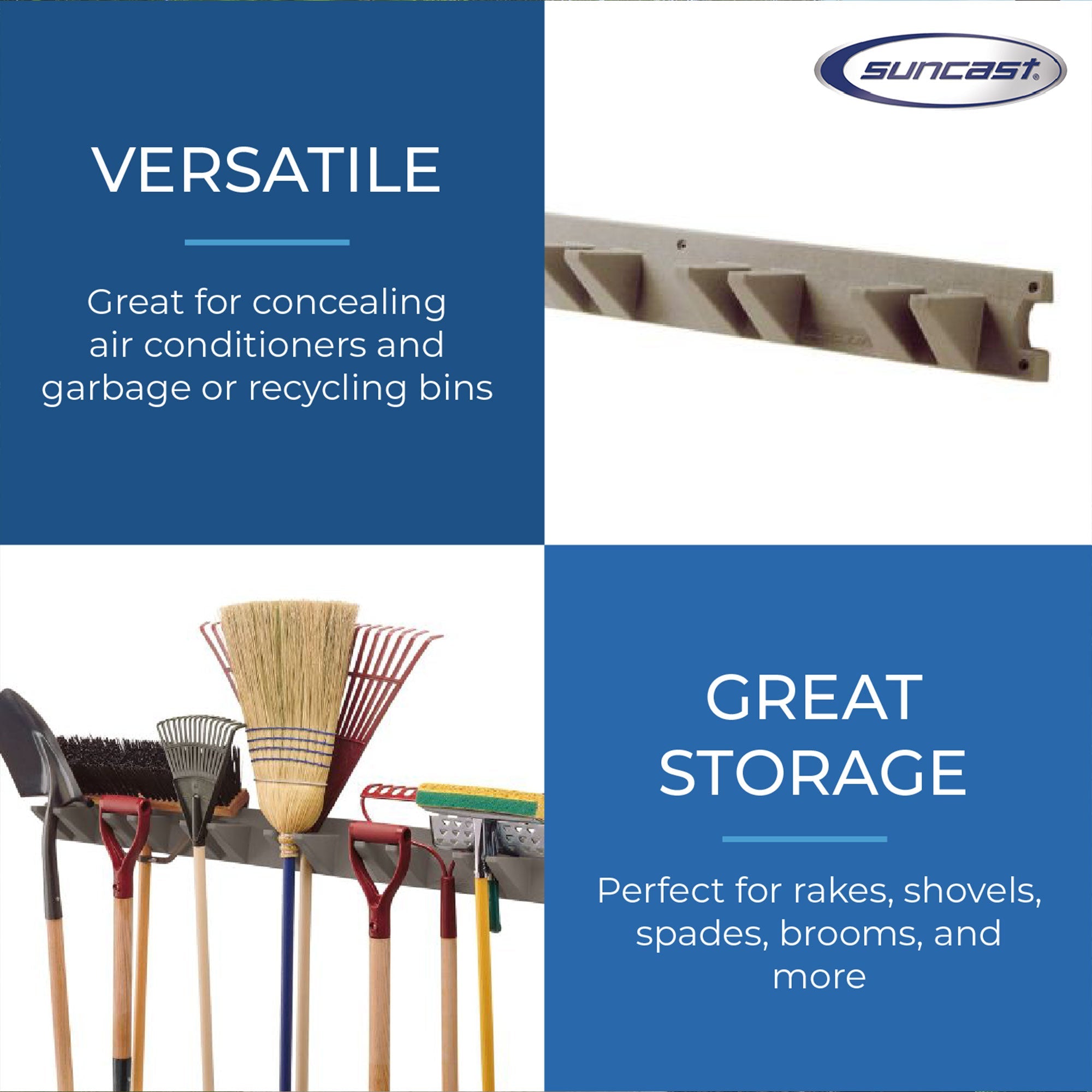Suncast 4 Foot Wall Mount Garden Long Handled Tool Hanger Organizer, Platinum
