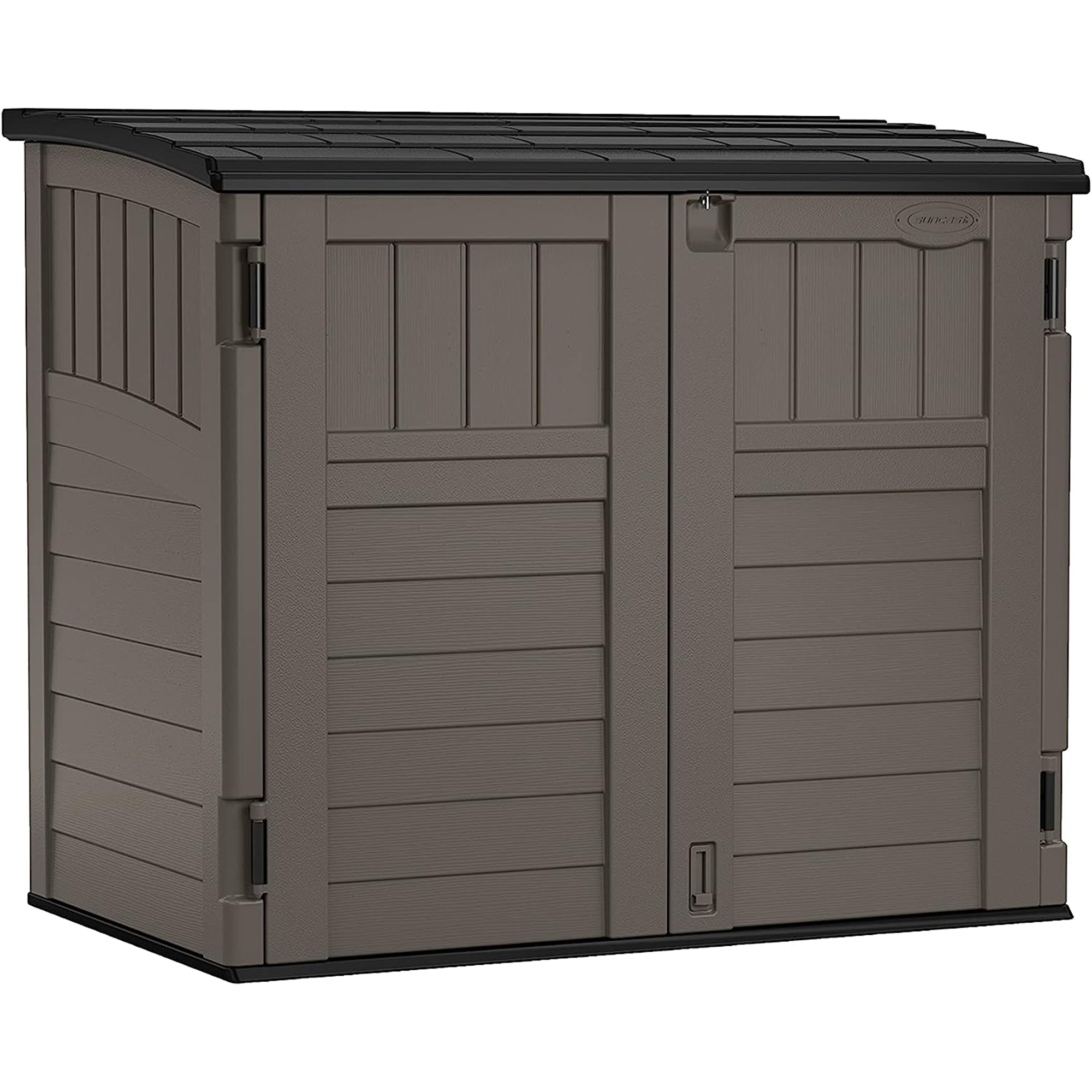 For a functional and sleek addition to your backyard, check out the Suncast Horizontal Glidetop Storage Shed. With ample space of 34 cubic feet for all your storage needs. This tool shed features a unique glide-top door system that allows you to save space while providing easy access to your items. The pad-lockable door ensures your belongings stay safe and secure with the 3-door locking system for peace of mind knowing your equipment is not going anywhere. Padlock is not included and sold separately.