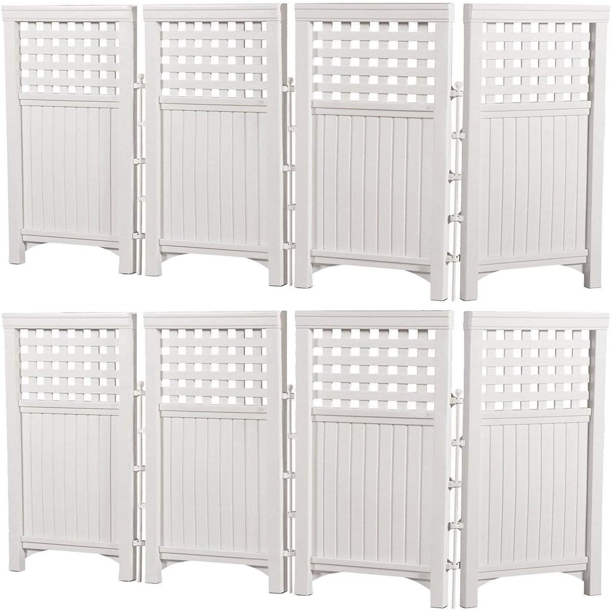 Suncast Outdoor Patio Garden 8 Panel Yard Screen Enclosure Gated Fence, White