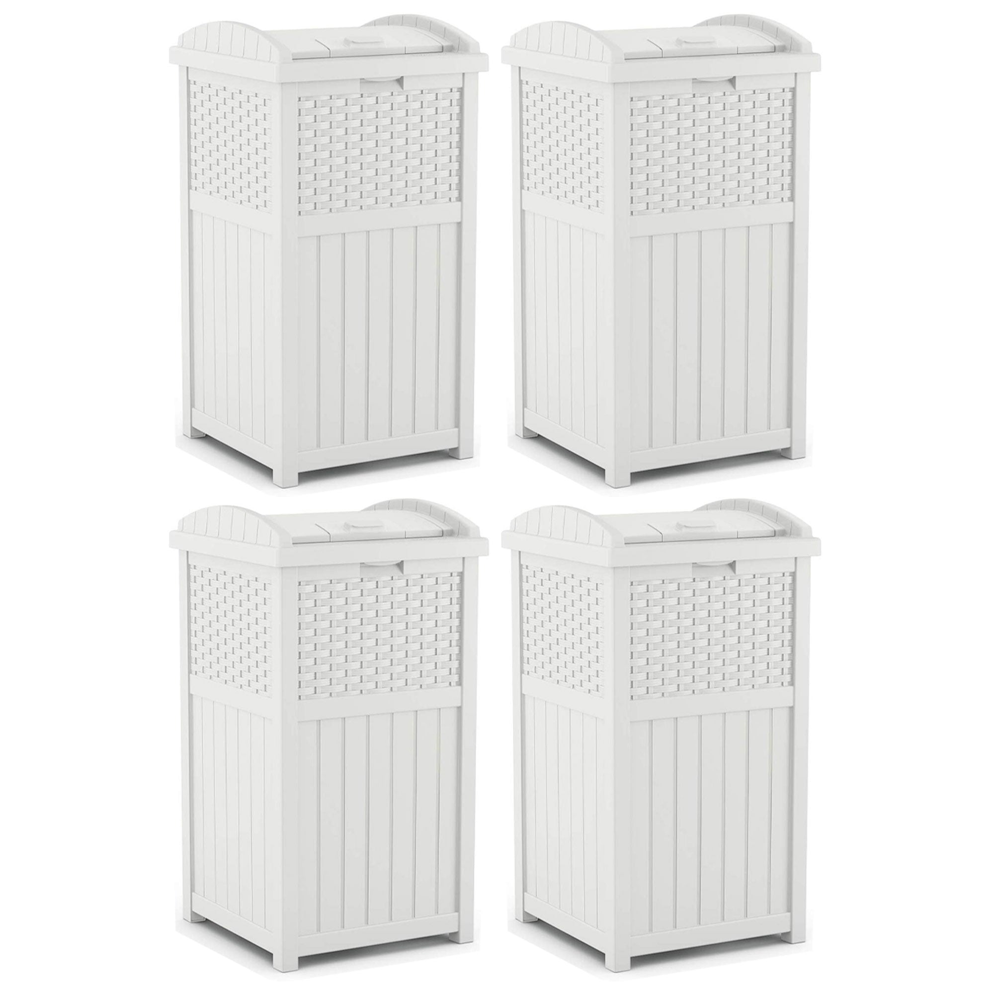 Suncast Trash Can Hideaway Outdoor 33 Gallon Garbage Waste Bin, White (4 Pack)
