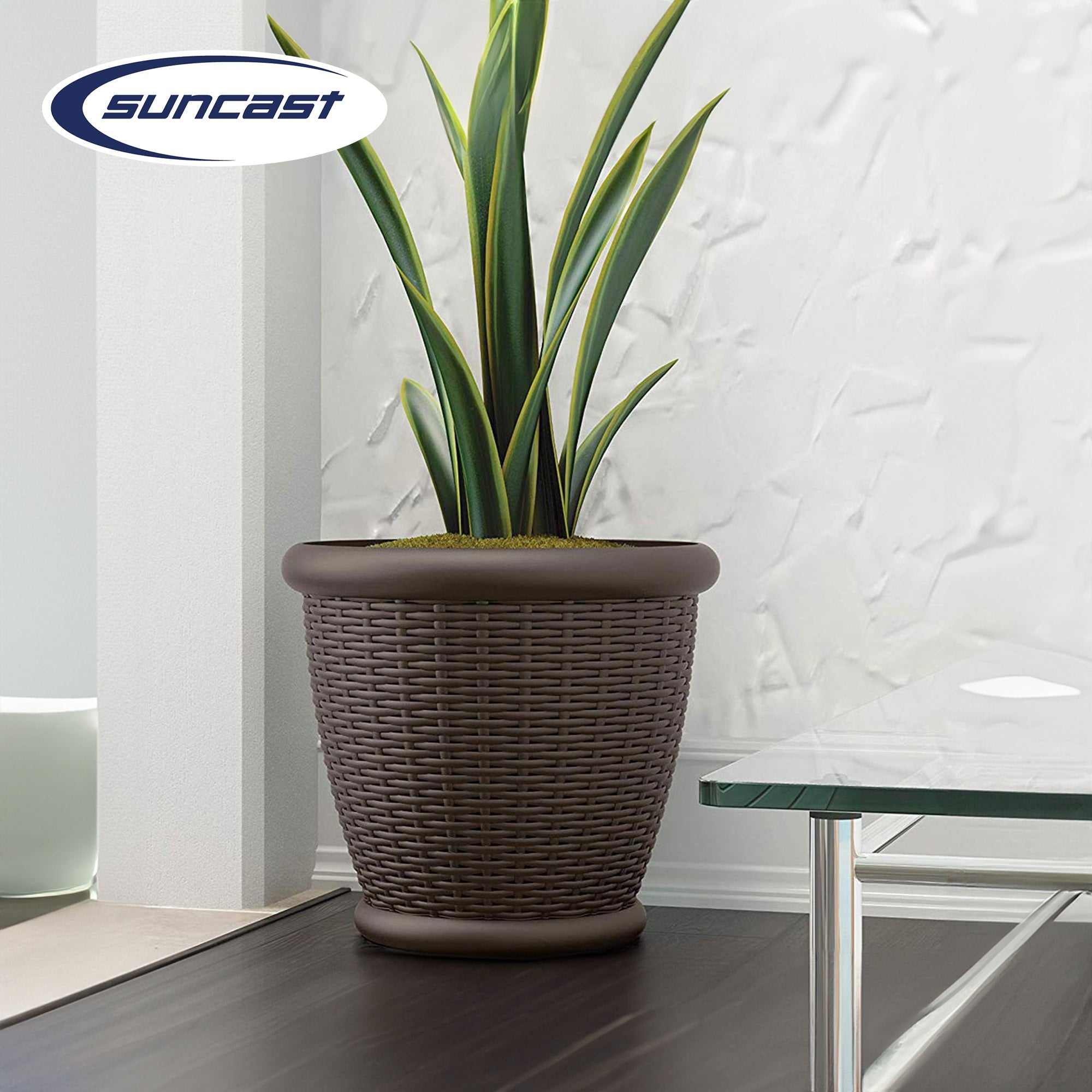 Suncast Willow 18" Diameter Decorative Wicker Patio Planter Pot, Java (4 Pack)