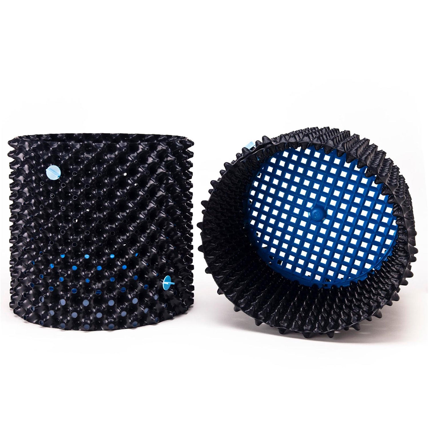 Made of recycled HDPE in the UK, the Superoots Air-Pot is circular with a perforated sidewall. There are no flat surfaces due to the inward and outward pointed cones, which eliminates any chance of starting the spiraling process as well as dramatically increases growth rates.