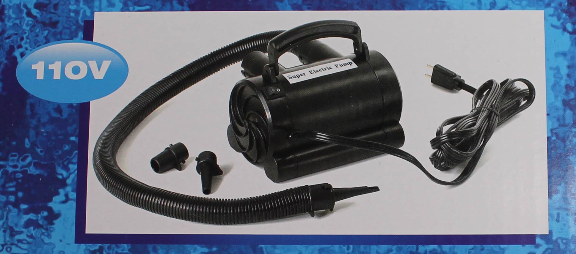 The Swimline 110V Air Pump is a handheld, electric air pump perfect for large inflatables. A high-capacity electric pump, it can inflate or deflate your Swimline or other floats in minutes.