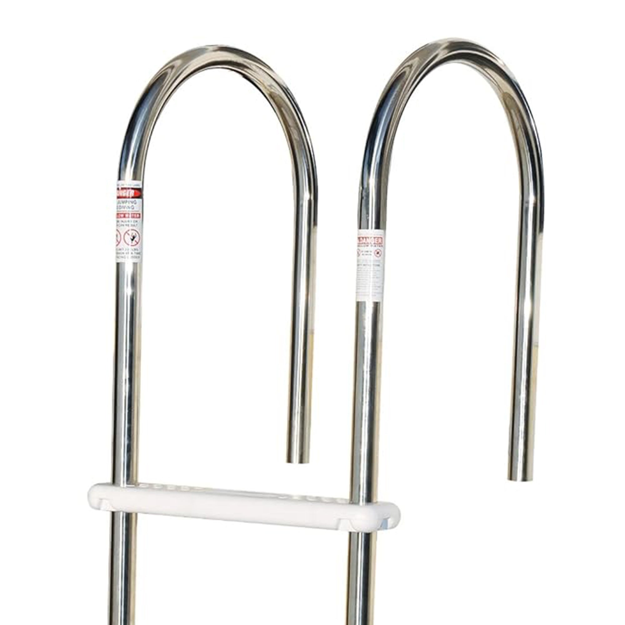 Crafted from high-quality materials, this pool ladder exhibits exceptional durability and resilience. The use of stainless steel, aluminum, and plastic guarantees resistance to the corrosive effects of pool chemicals and water. Its meticulous construction ensures a stable and trustworthy entry and exit system for swimmers of all ages. This ladder also offers a balance of sturdiness and space efficiency. The adjustable design caters to pool walls ranging from 48 inches to 52 inches in height, ensuring compatibility with a wide variety of pool setups. With non-slip molded steps that provide secure footing for all users, you don't need to worry about slipping on wet poolside surfaces. With a generous load capacity of 250 pounds, this ladder accommodates both children and adults. Whether you're entering or exiting the pool, it's engineered to handle the load with ease. Plus, the added handrails on either side provide extra support and peace of mind, especially for those with mobility concerns.