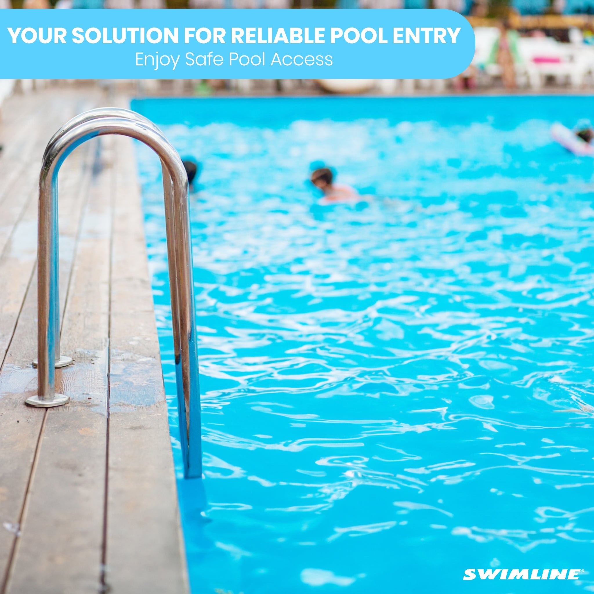 In summary, the Swimline HydroTools Stainless Steel Pool Deck Ladder with Non-Slip Molded Steps is guaranteed to provide durability and aesthetics. With the flexibility to accommodate various pool wall heights, it's the ideal choice for your above-ground or inground pool.