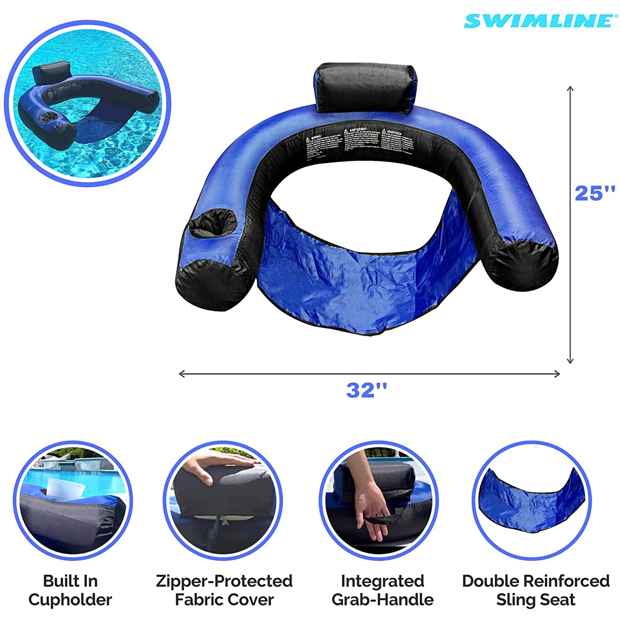 SWIMLINE ORIGINAL Fabric Covered U-Seat Inflatable Pool Float Lounger Sling Seat