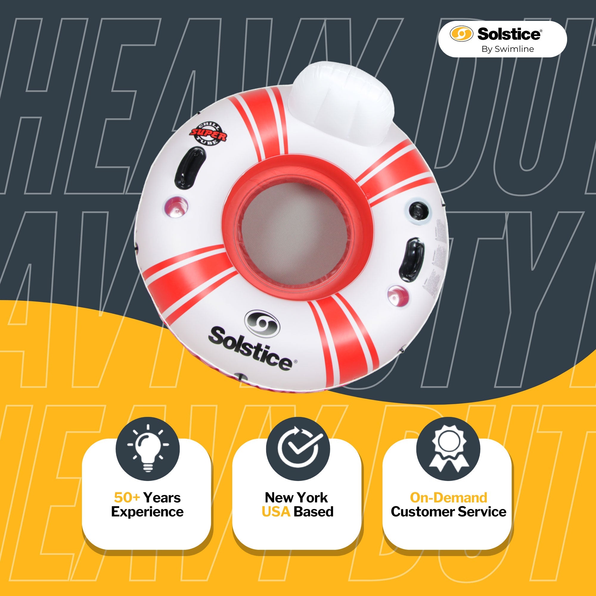 Excitement and fun are making a splash in your swimming pool all summer long with the Swimline Super Chill Vinyl and Nylon Mesh Single Seat Swimming Pool Tube Float.