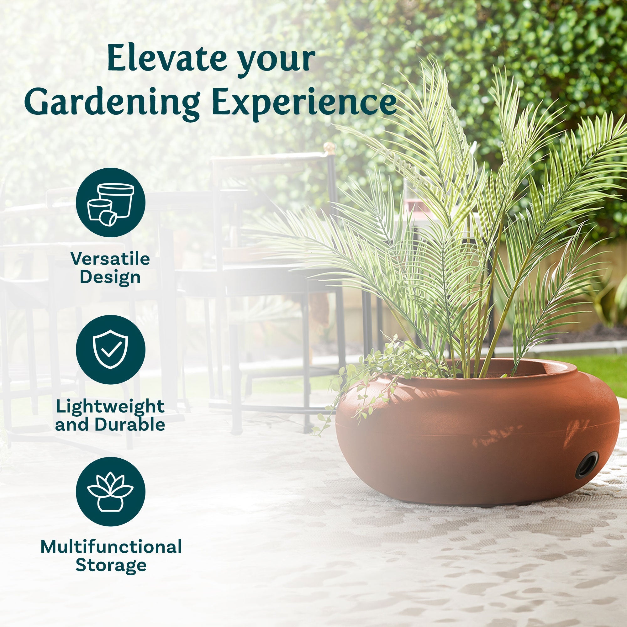 The HC Companies 21 Inch Plastic Outdoor Hose Storage Hideaway Pot, Terra Cotta