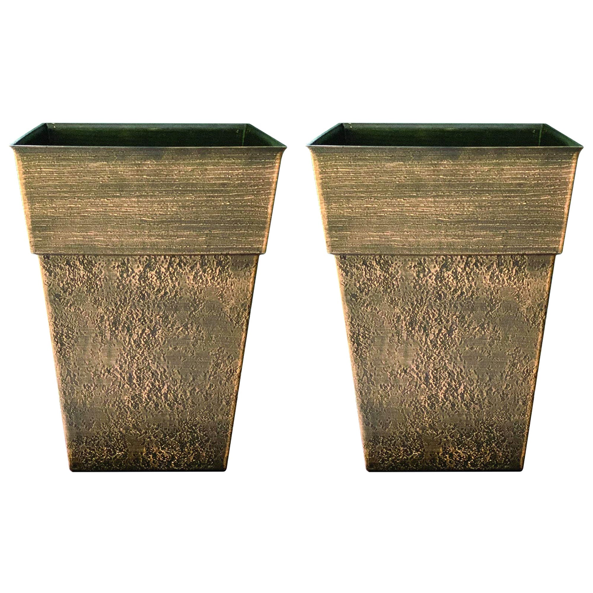 The HC Companies Avino 13 Inch Square Flower Planter Pot, Celtic Bronze (2 Pack)