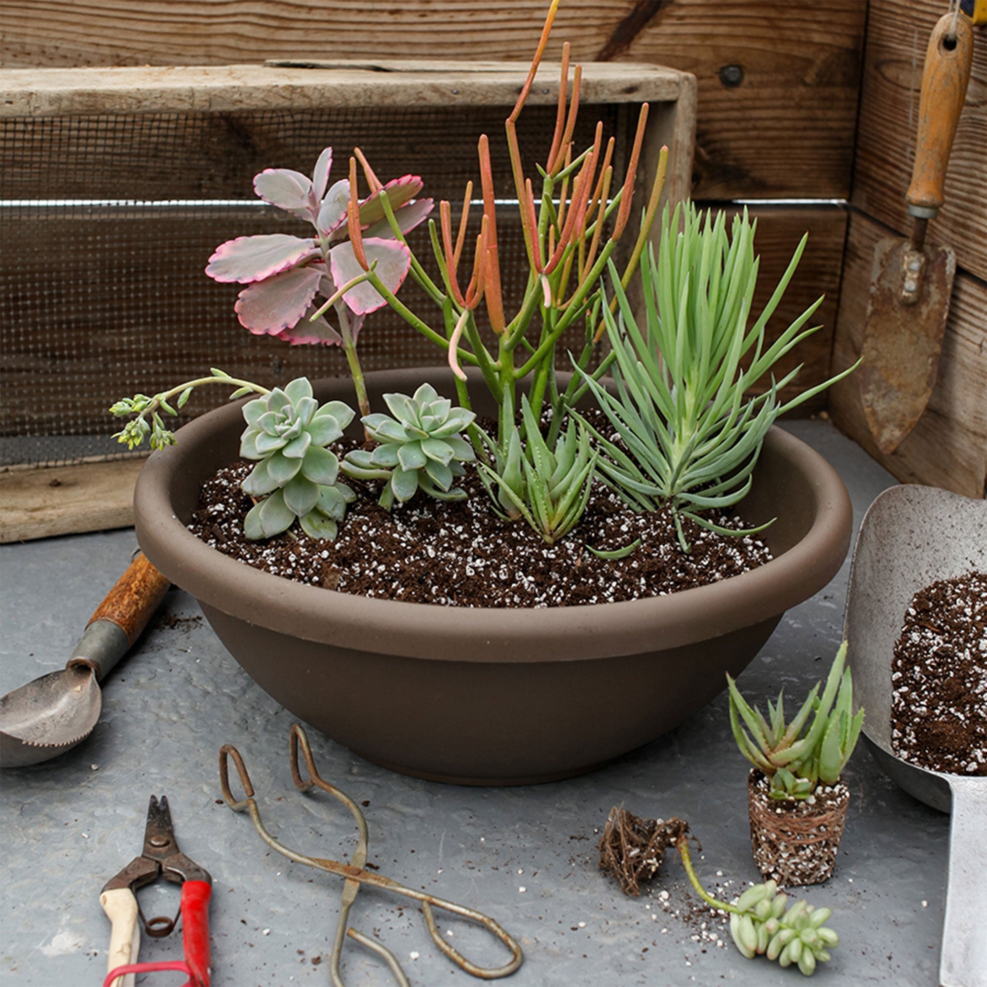 - Lovely 18-inch diameter garden planter allows you to grow beautiful succulents and shallow-rooted annuals, excellent for fairy gardens