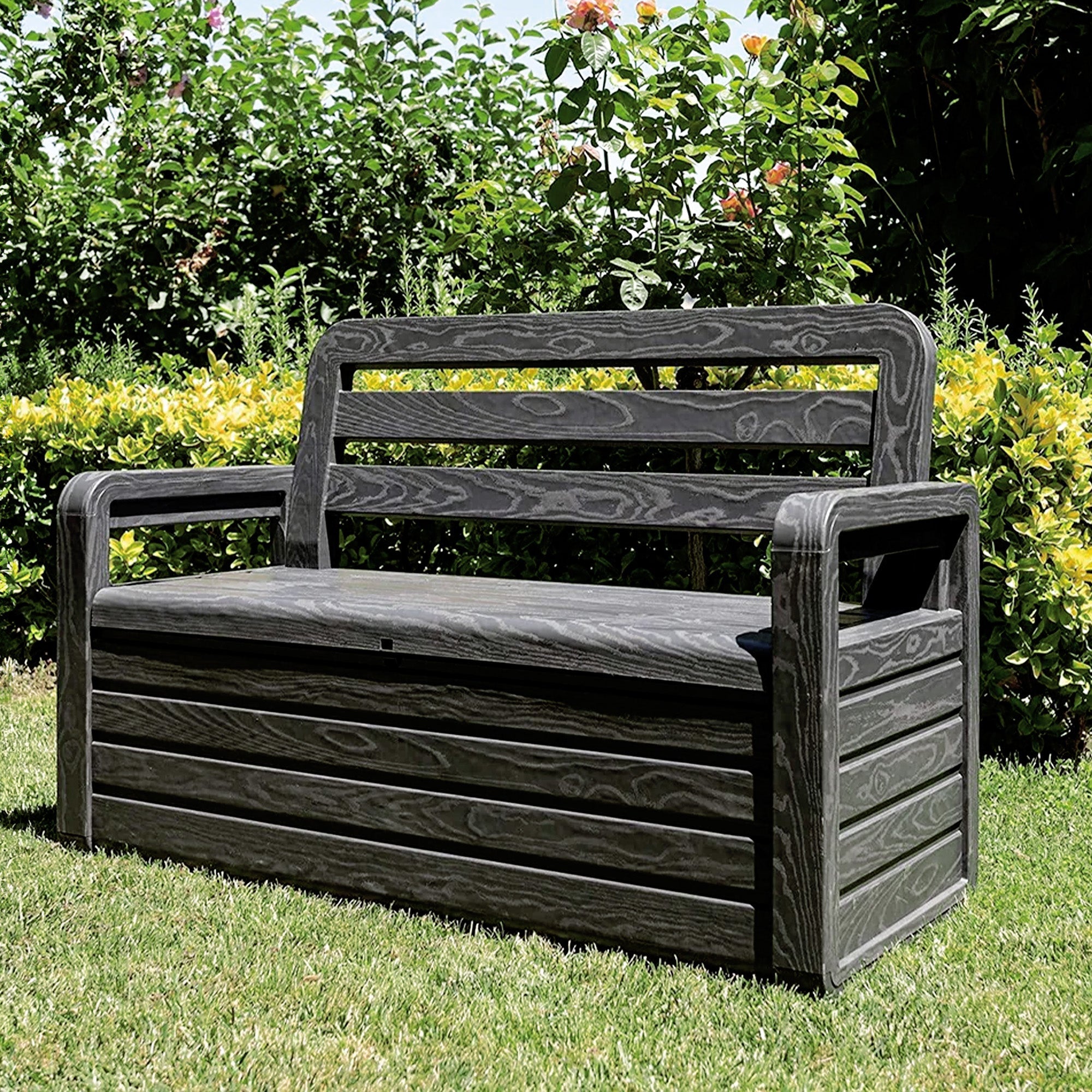 Toomax Foreverspring 70 Gallon Outdoor Deck Storage Box Chest Bench, Dark Gray