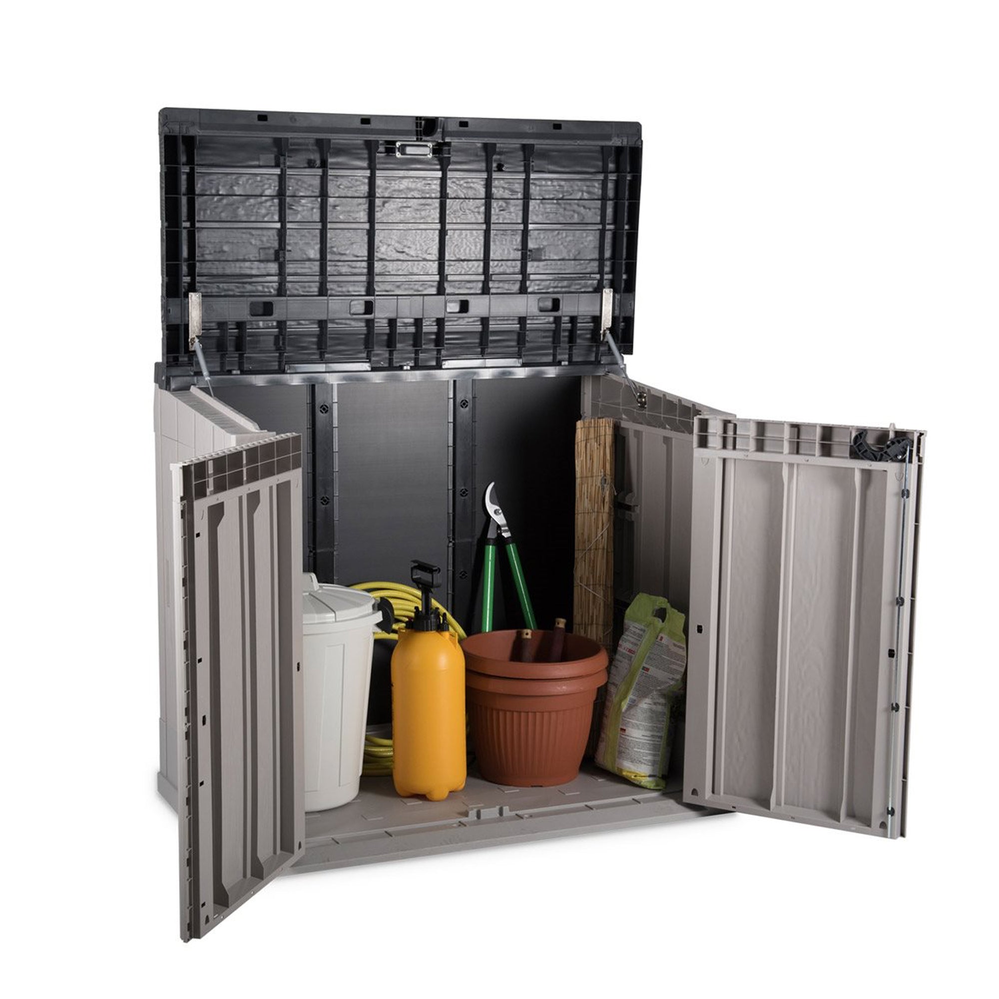 - Top of 2270 liter shed opens, and there are 2 doors to allow you to easily access your items