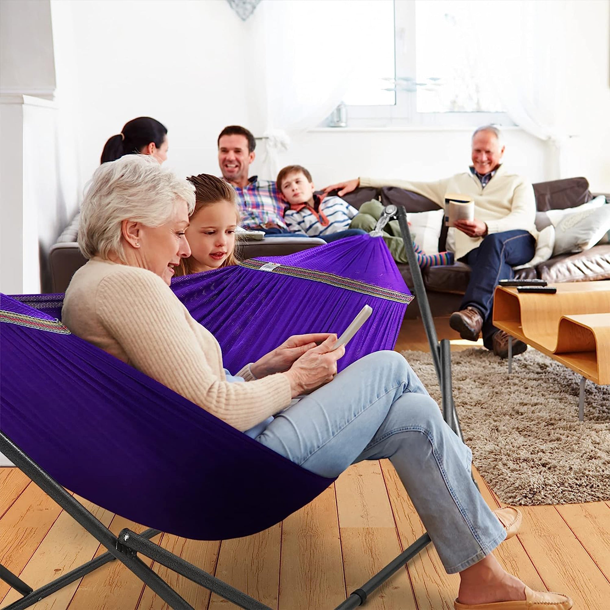 Tranquillo Universal 106.5" Double Hammock with Adjustable Stand and Bag, Purple