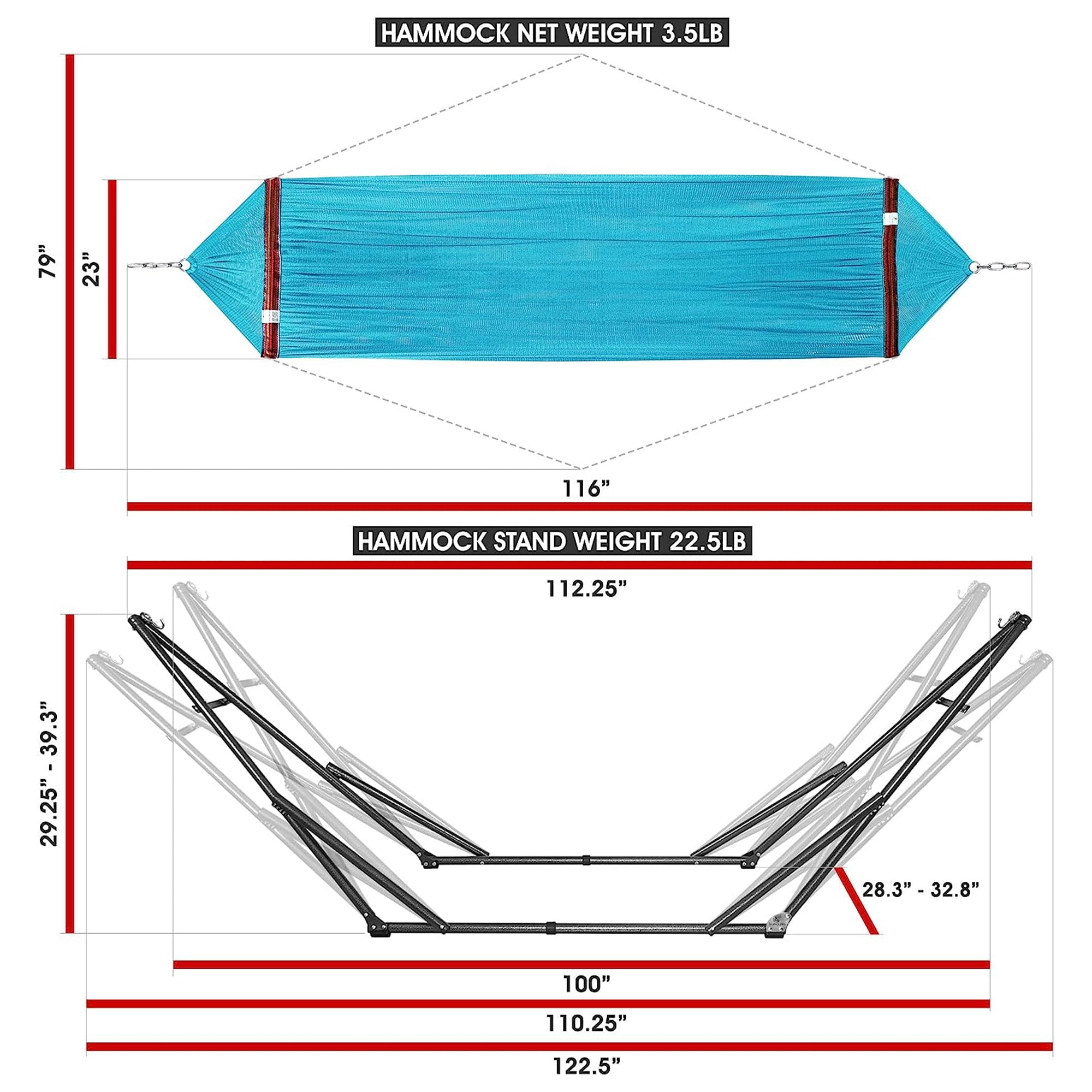 - Includes a carry bag to easily store and transport the hammock stand and net with an effortless set-up process