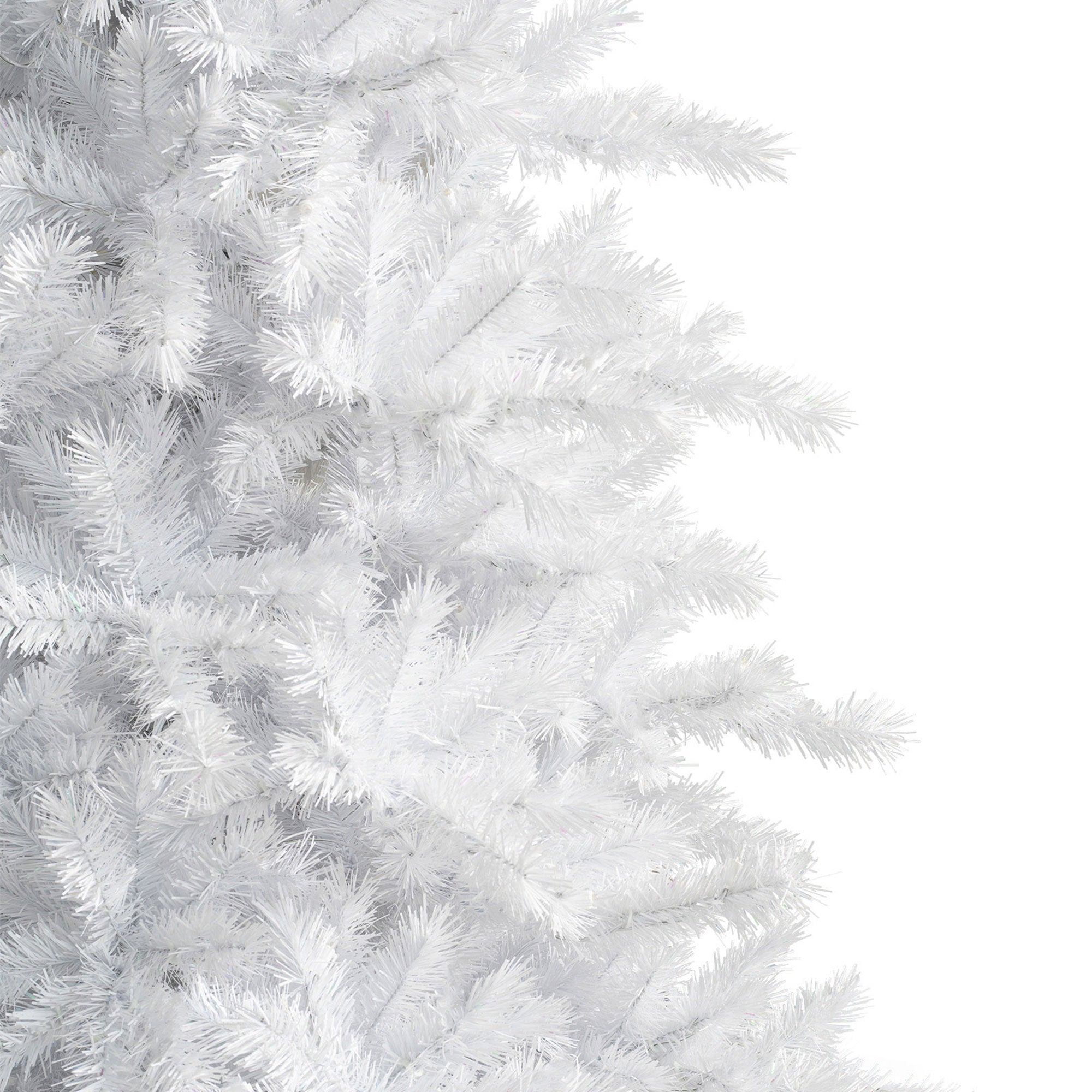 - 87% PVC and 13% iridescent white needles mix to give this tree wintry white glimmer