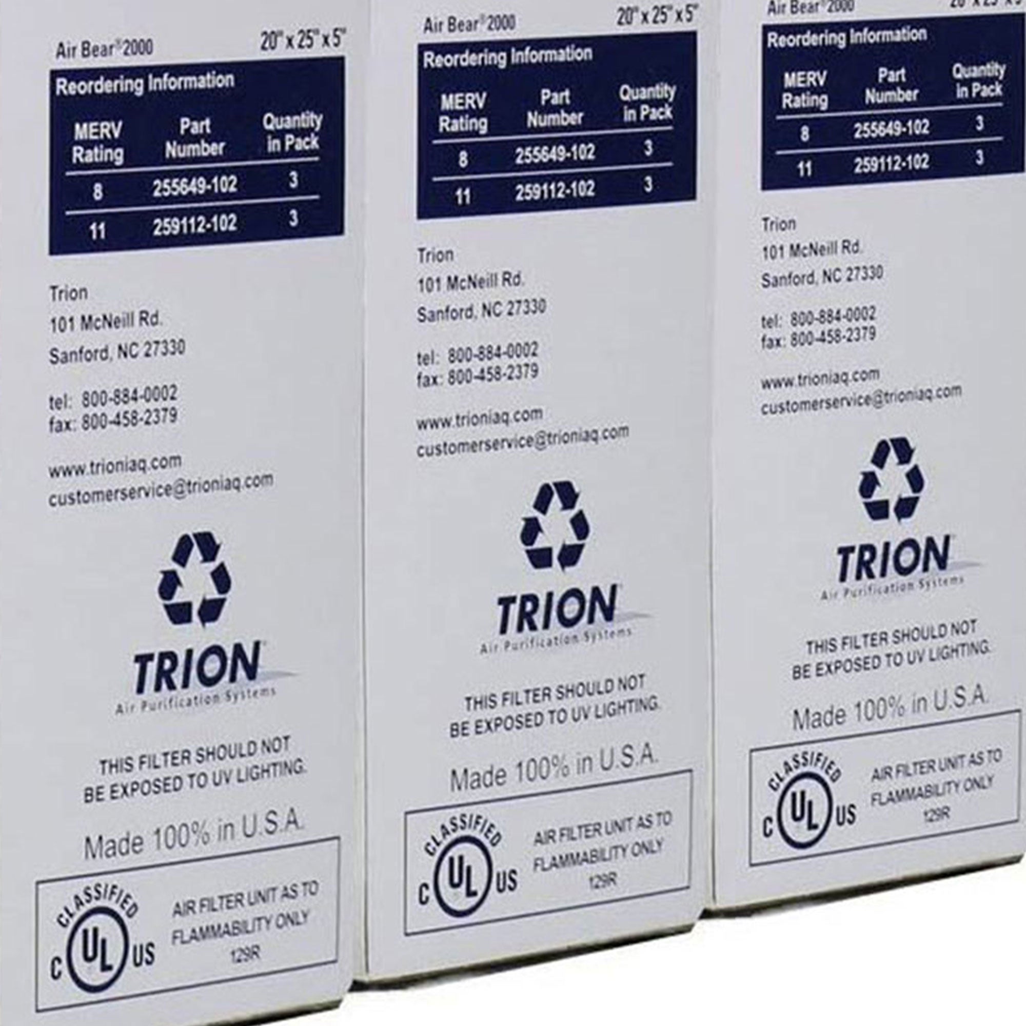 Trion 255649-102 Air Bear 20 x 25 x 5 Inch MERV 8 Air Purifier Filter (6 Pack)