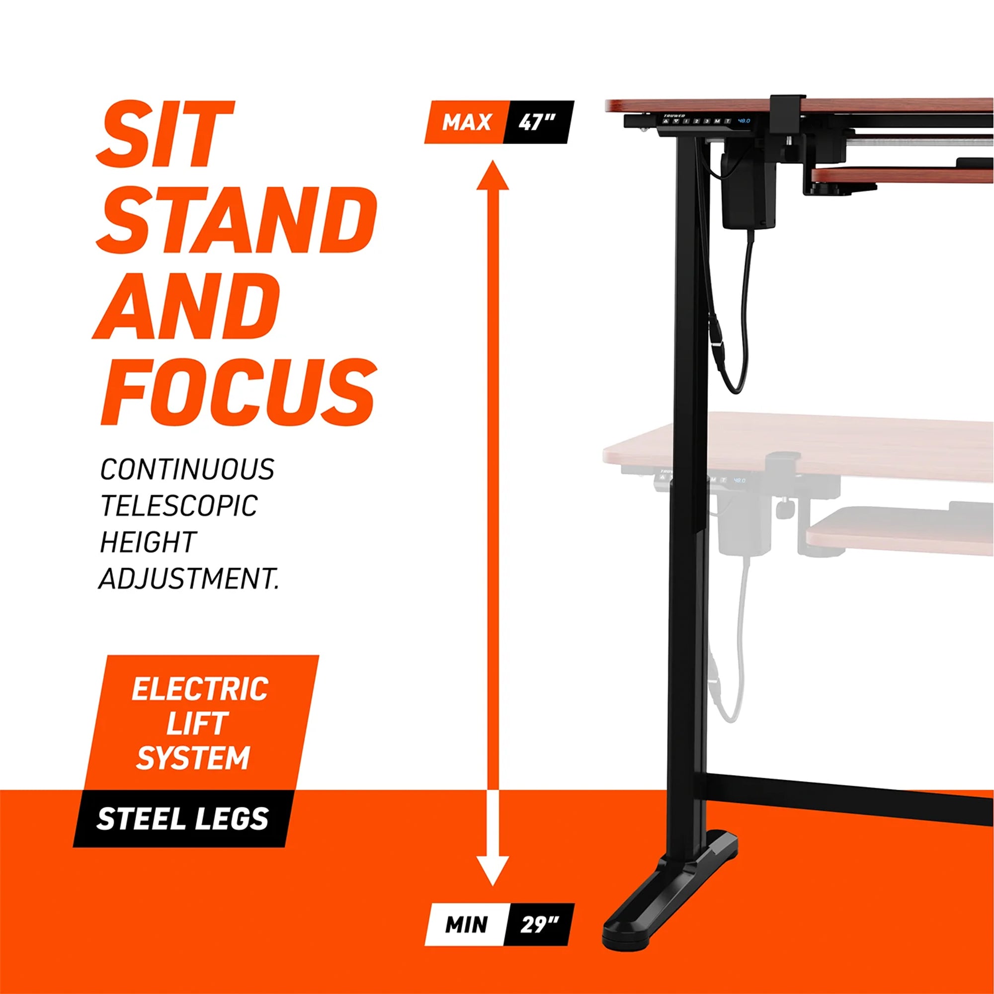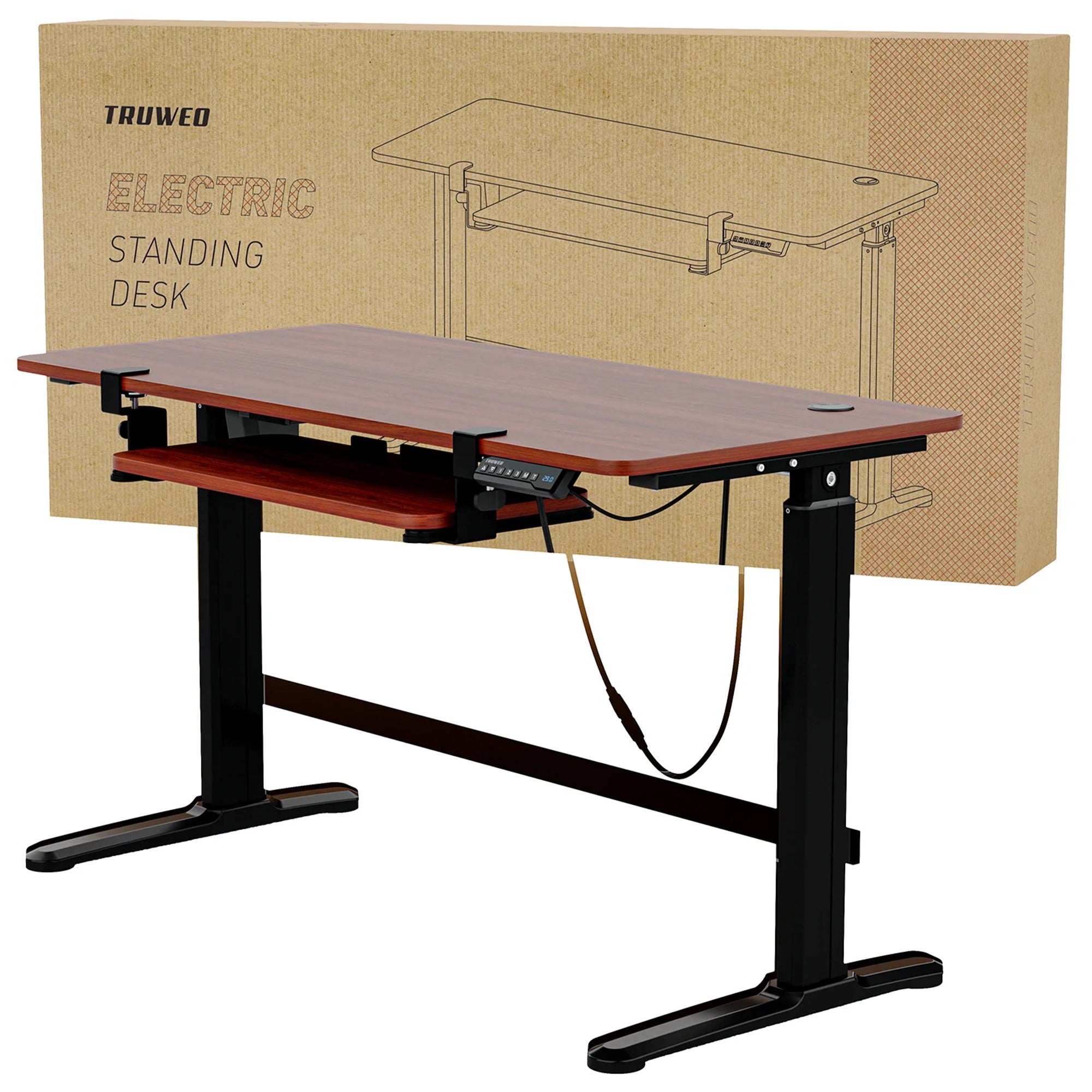 Truweo Adjustable Electric Standing Desk Tabletop w/Sliding Keyboard Tray, Brown