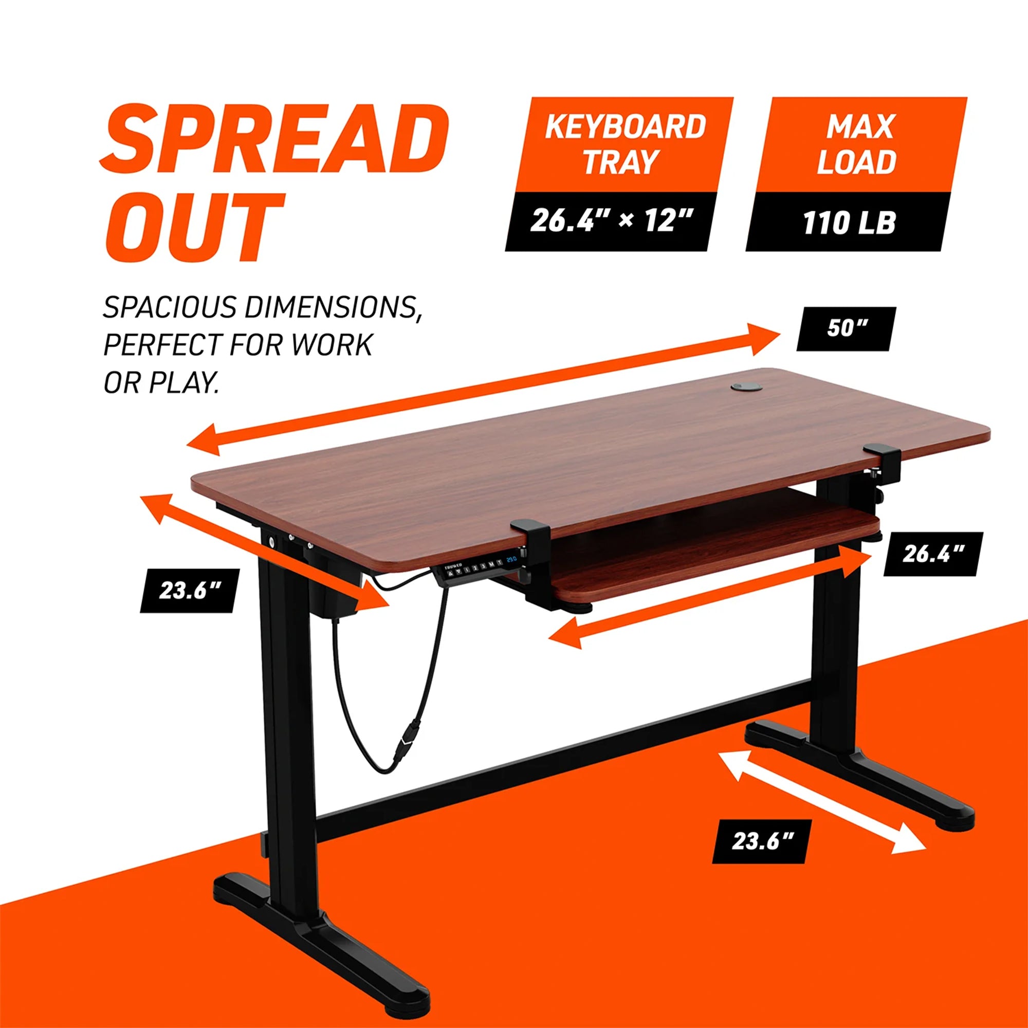 • Sturdy and stable desktop can accommodate up to 110 pounds