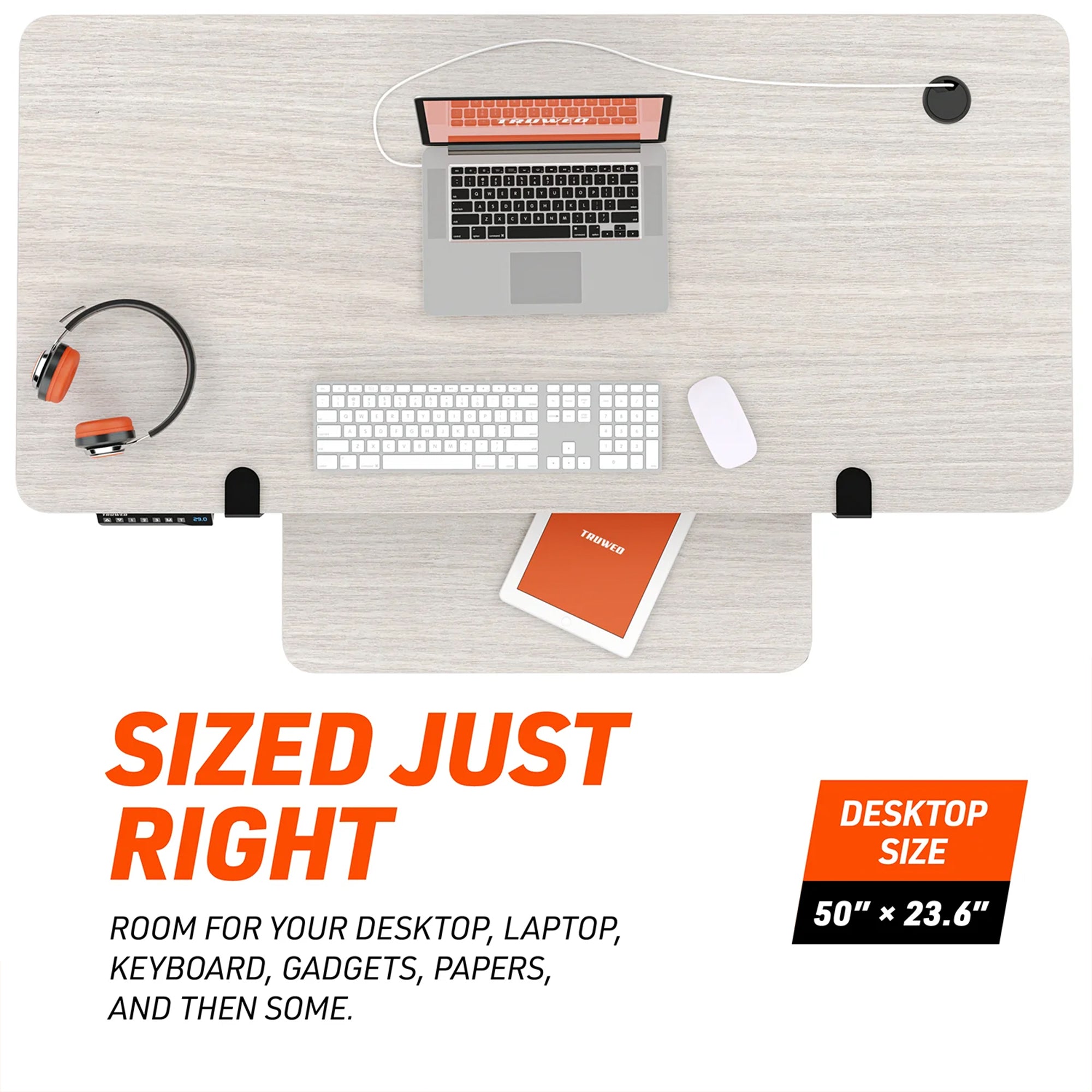 Truweo Adjustable Electric Standing Desk Tabletop w/Sliding Keyboard Tray, Gray