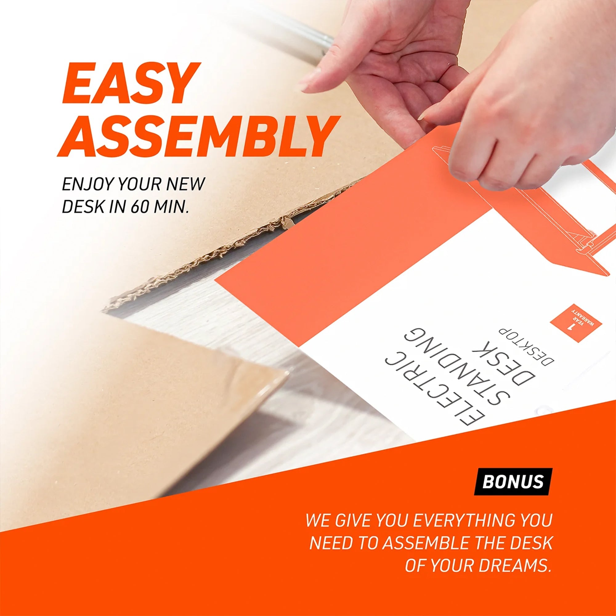 This standing desk boasts a spacious 50-inch wide desktop that can accommodate multiple monitors, laptops, and other accessories with ease. Durably made, the tabletop can support up to 110 pounds and is equipped with rounded corners and scratch resistance, giving your space a sleek and contemporary look.