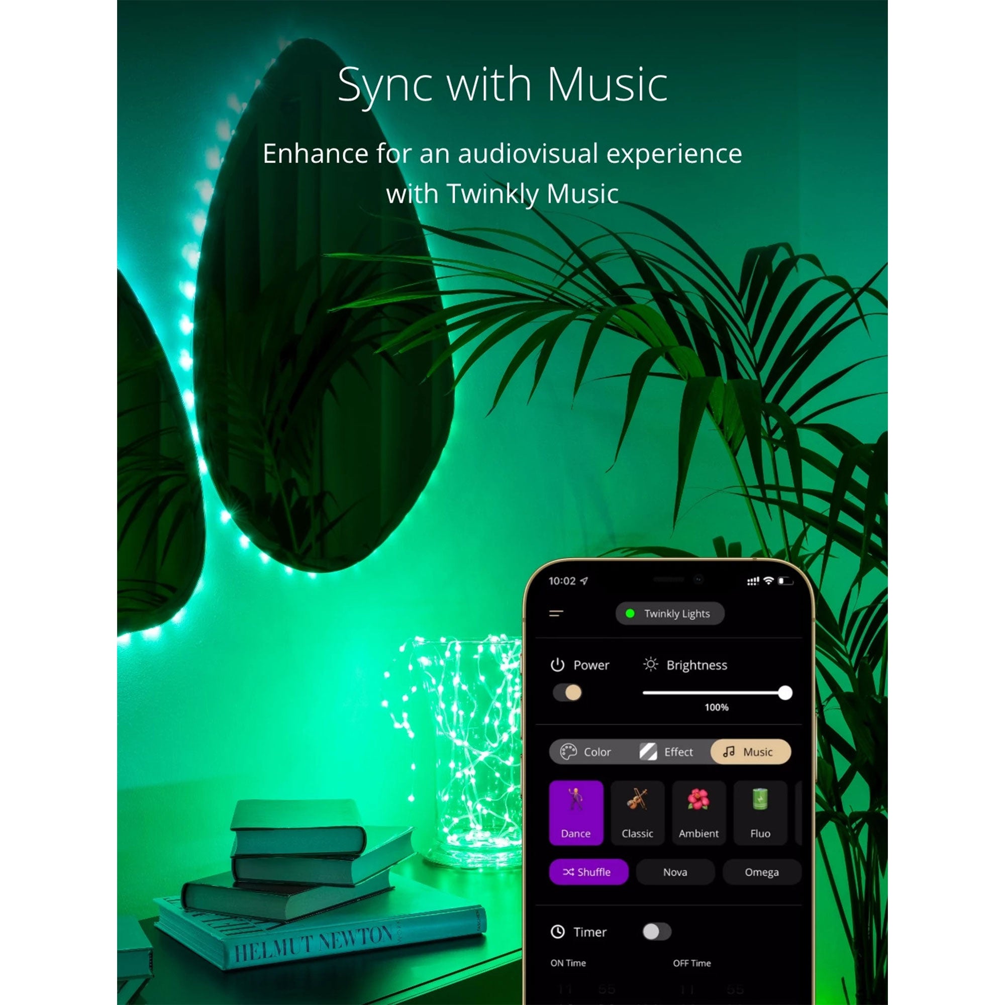 - Twinkly mobile smartphone app allows you to control the lights and produce 16 million color variations for a custom look with Wi-Fi and Bluetooth