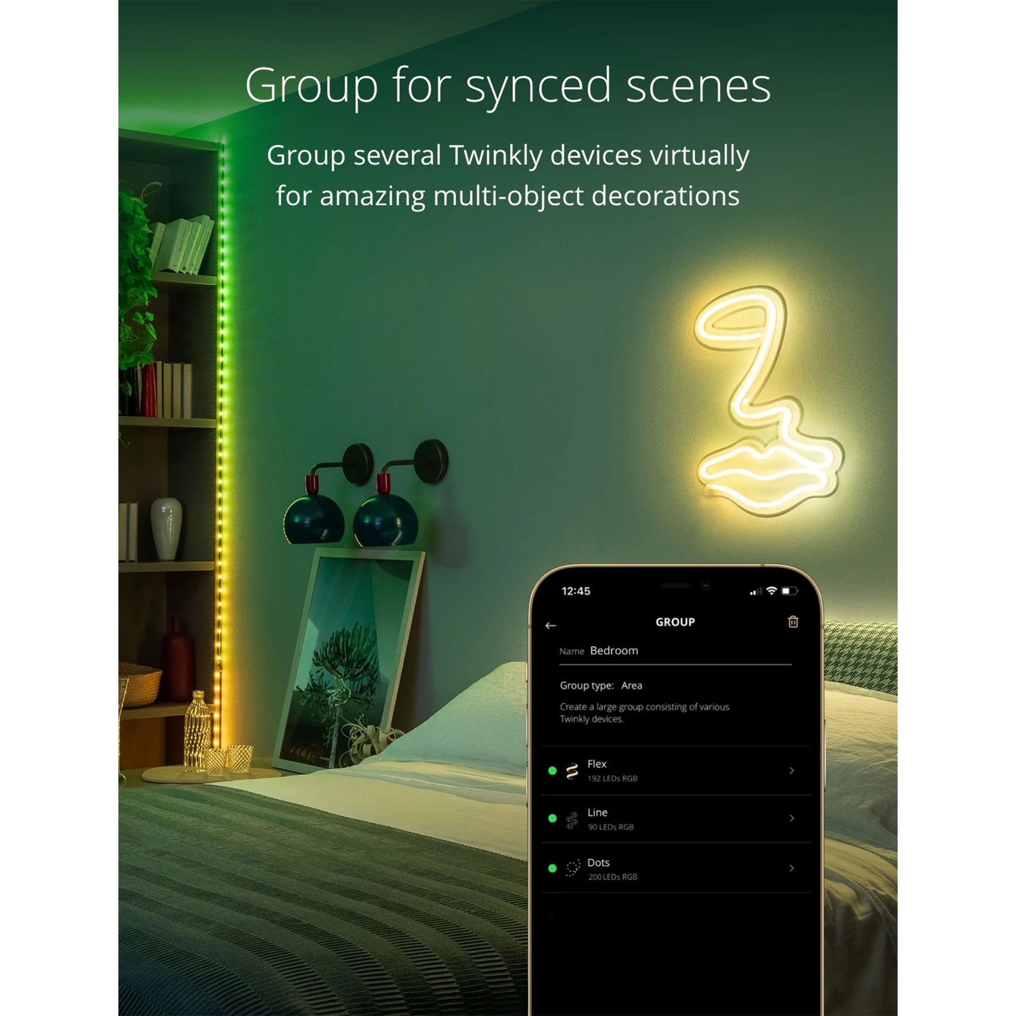• Group multiple Twinkly devices, set automated playlists, switch lights on and off, apply timers, or dim and adjust brightness