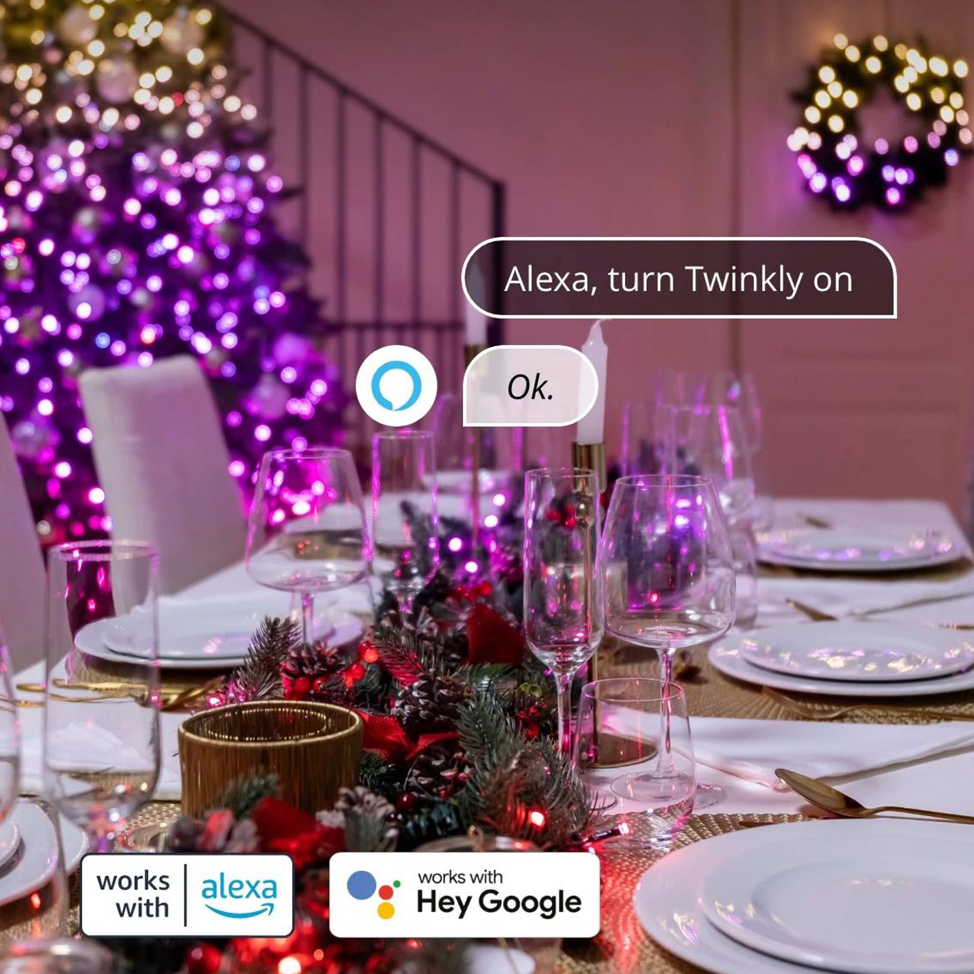 - Compatible with Google Home products and Amazon Alexa