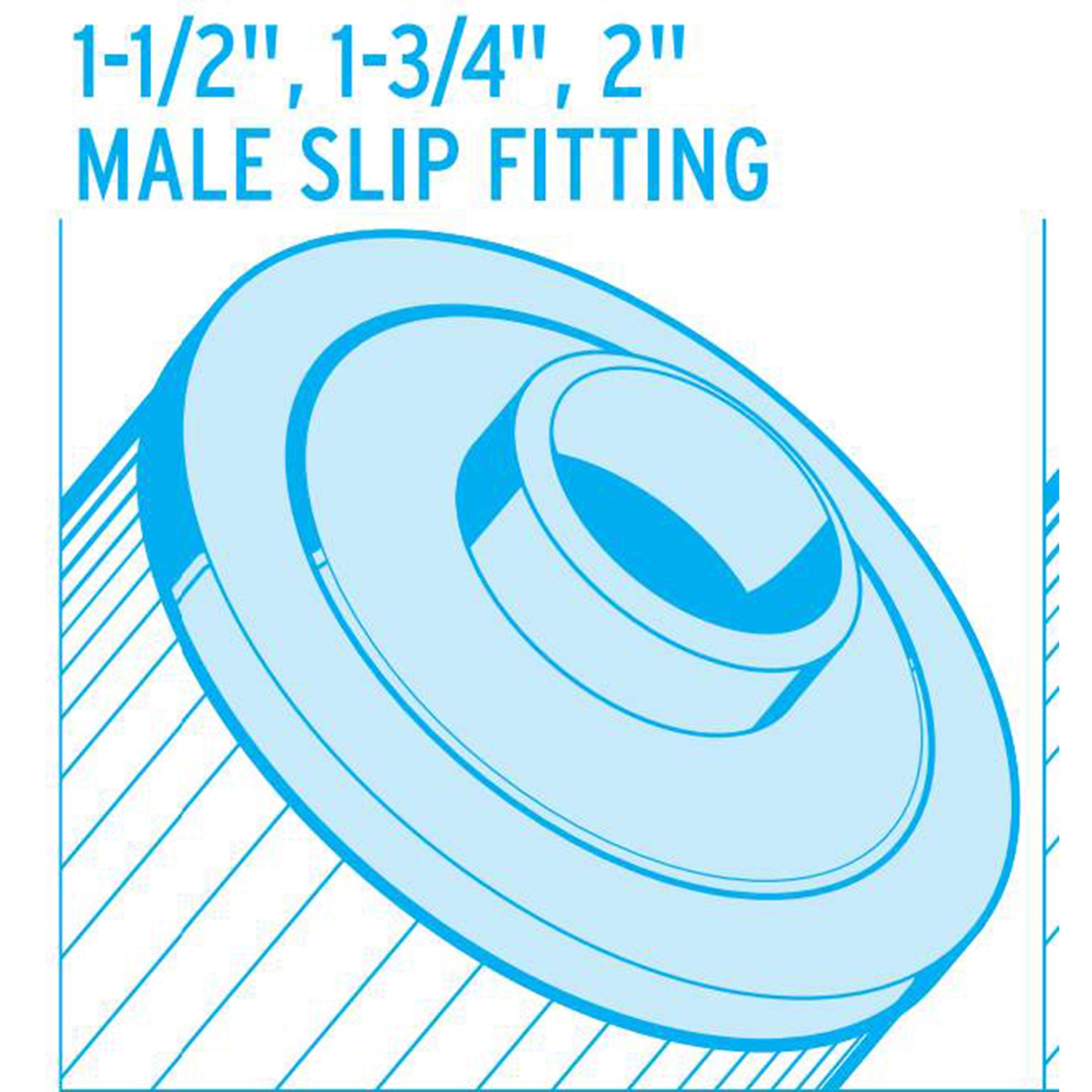 - End cap design includes a top 1-1/2-inch male slip fitting and bottom 2-1/2-inch open configuration with beveled edge