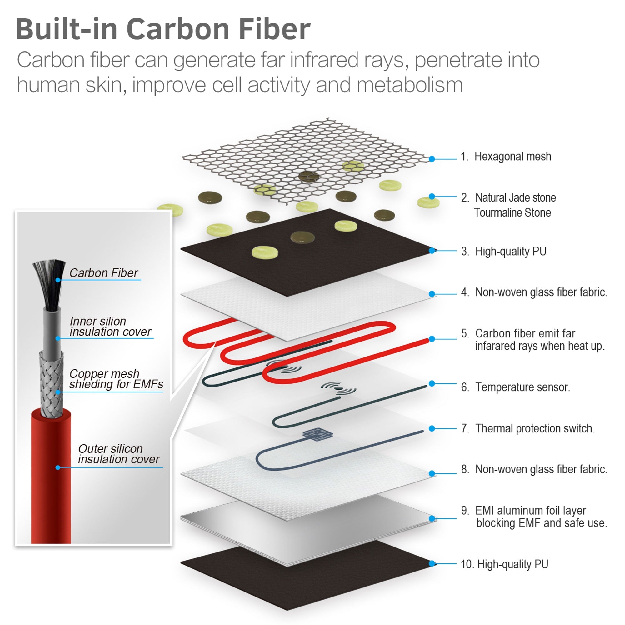 - Built-in carbon fiber to emit far-infrared rays that can penetrate the tissue of the body and release heat, effectively relieving pain in various parts