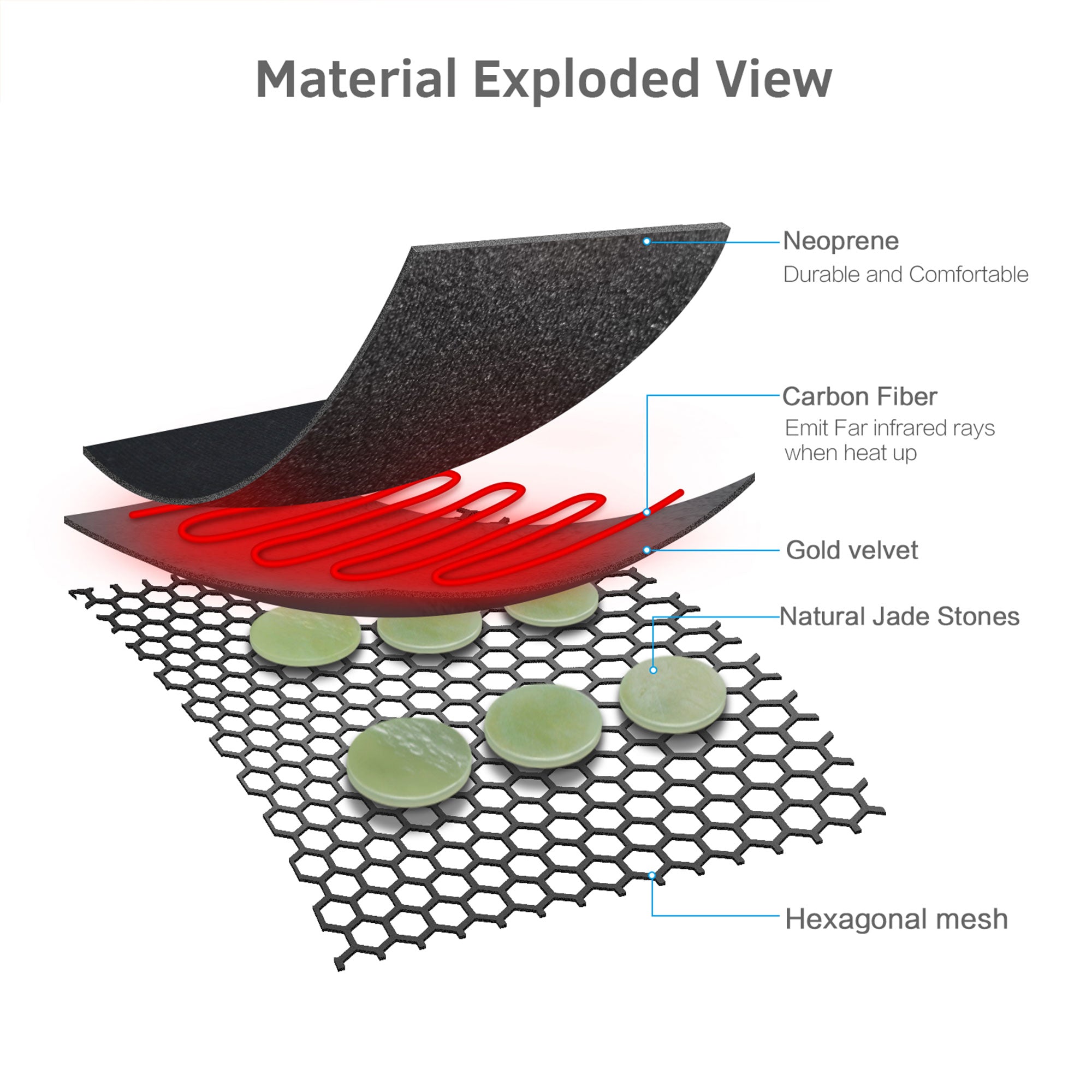 Made with high-quality materials, ensuring that it's both durable and comfortable to use. It's easy to control and features adjustable temperature settings, so you can customize the heat to your liking. High-quality PU and neoprene, this heating wrap provides comfort without the smell of traditional heating pads. Featuring 8 natural jade stones that emit negative ions while heating up to a maximum of 158 degrees Fahrenheit. With the 1-hour auto-shutoff feature, you can relax in comfort with peace of mind. The layered design features carbon fiber and the lightweight, portable design and drawstring pouch allows you to take this heating wrap with you for the on-the-go.