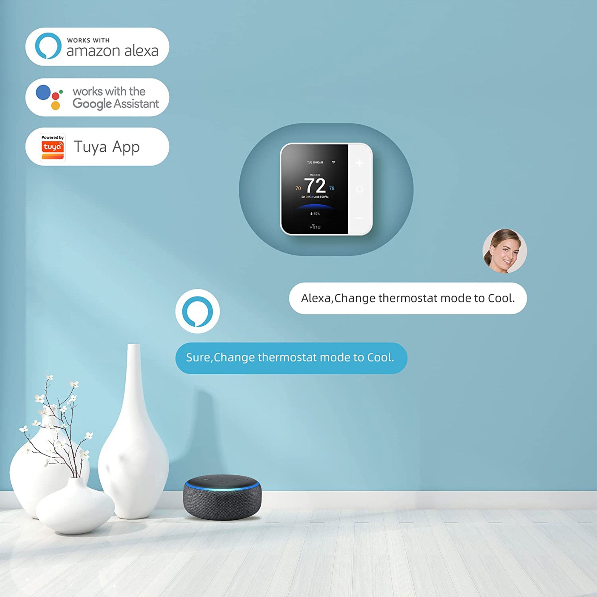 The easy-to-control the temperature and settings of your thermostat from anywhere with the Wi-Fi-connected system. With a stable, sixth-generation connection, the smart home thermostat easily integrates with various devices. Controlling from your laptop or smartphone with the Vine App, the thermostat also connects to Amazon Alexa and Google Assistant, letting you adjust your home temperature by voice.
