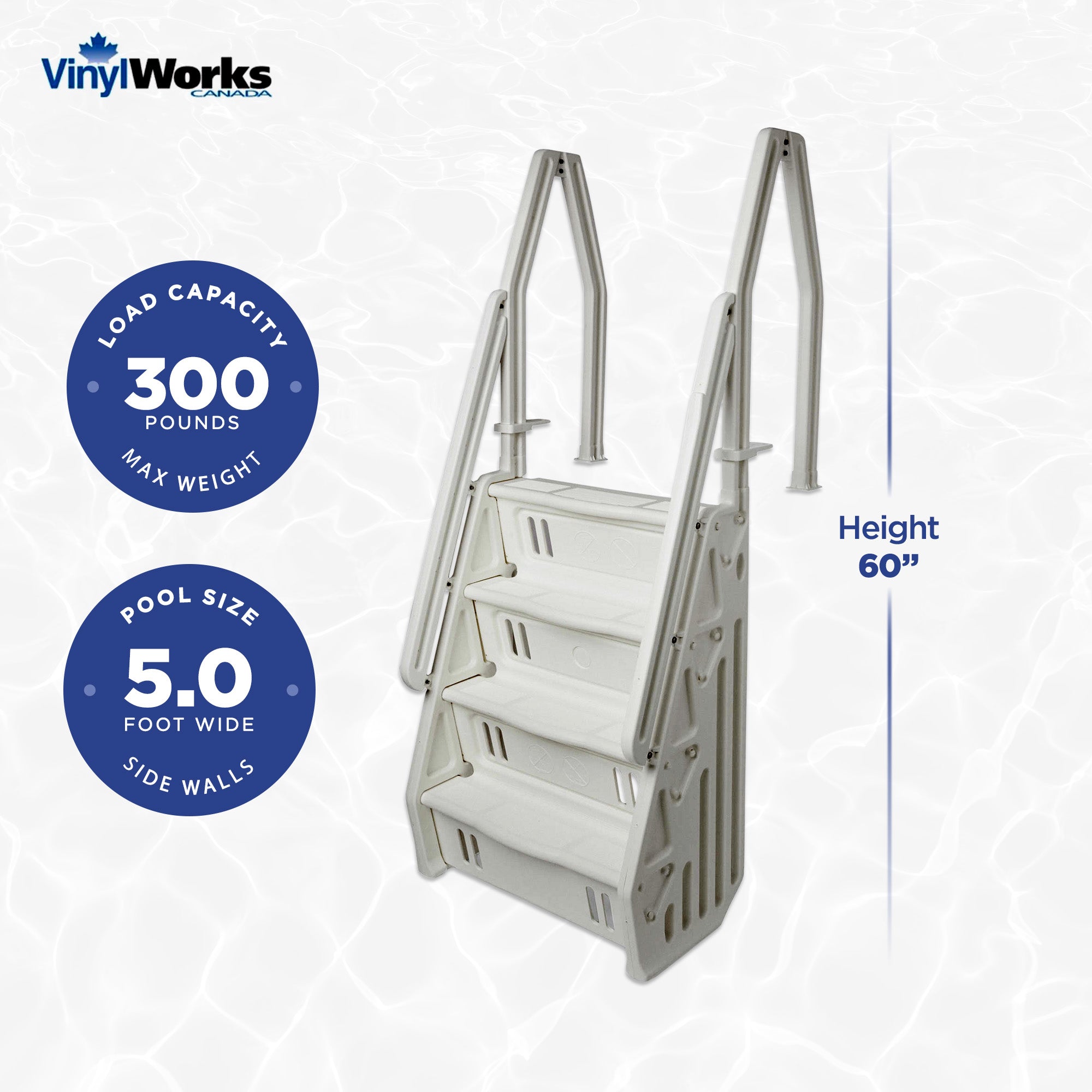 Vinyl Works Adjustable 32 Inch In-Pool Step Ladder for Above Ground Pools, White