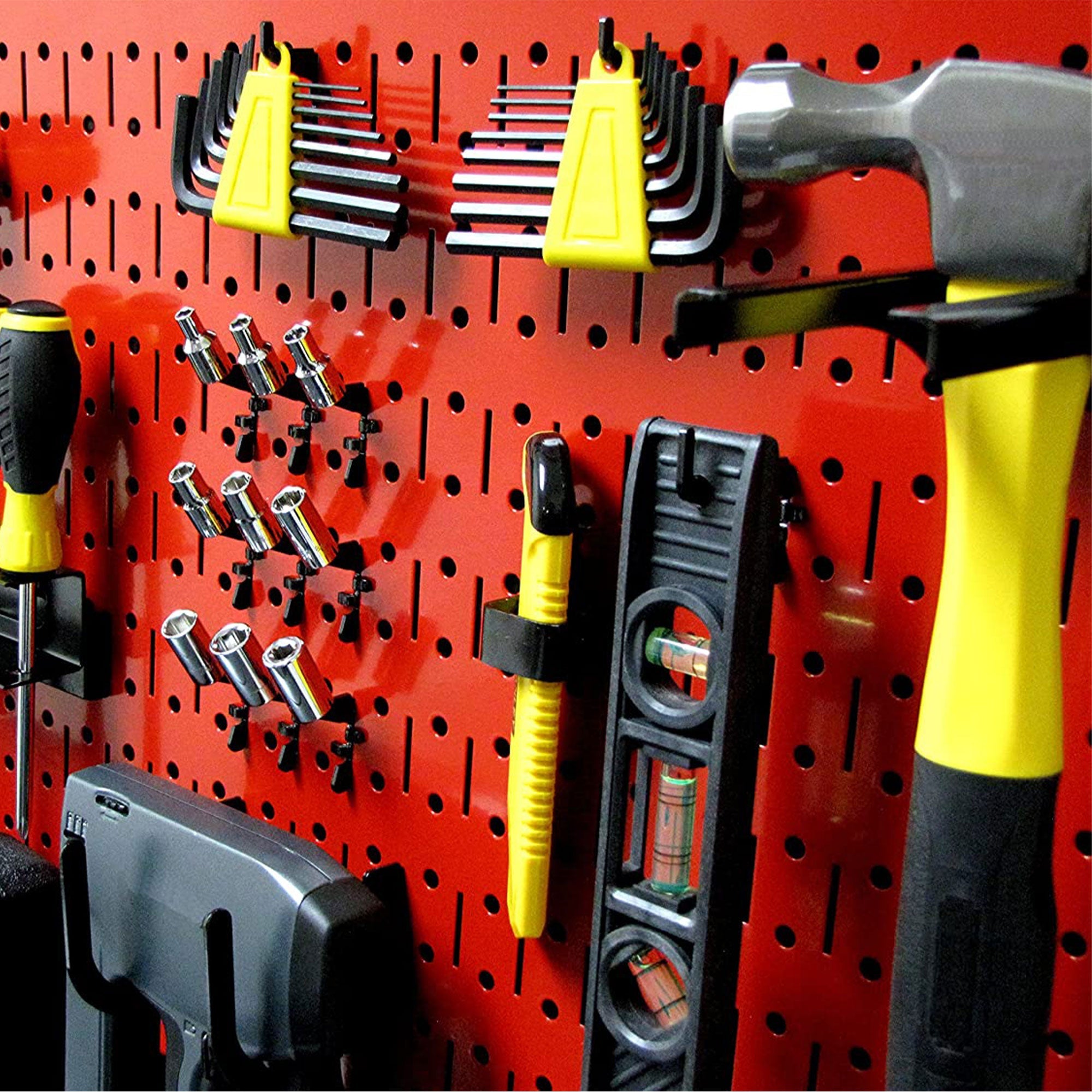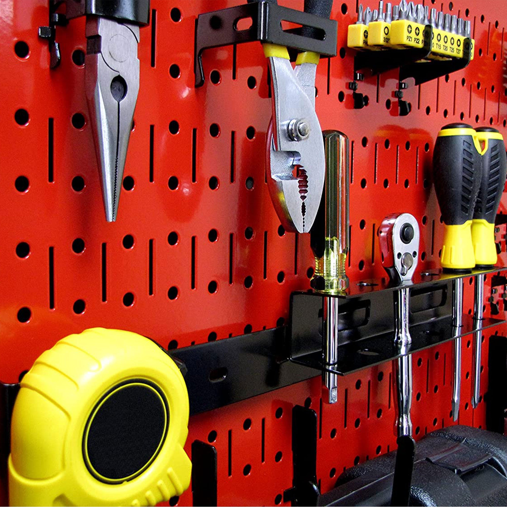 • Heavy-duty wall-mounted pegboard organizers are perfect for storing and organizing tools in garage, sheds, and other work areas