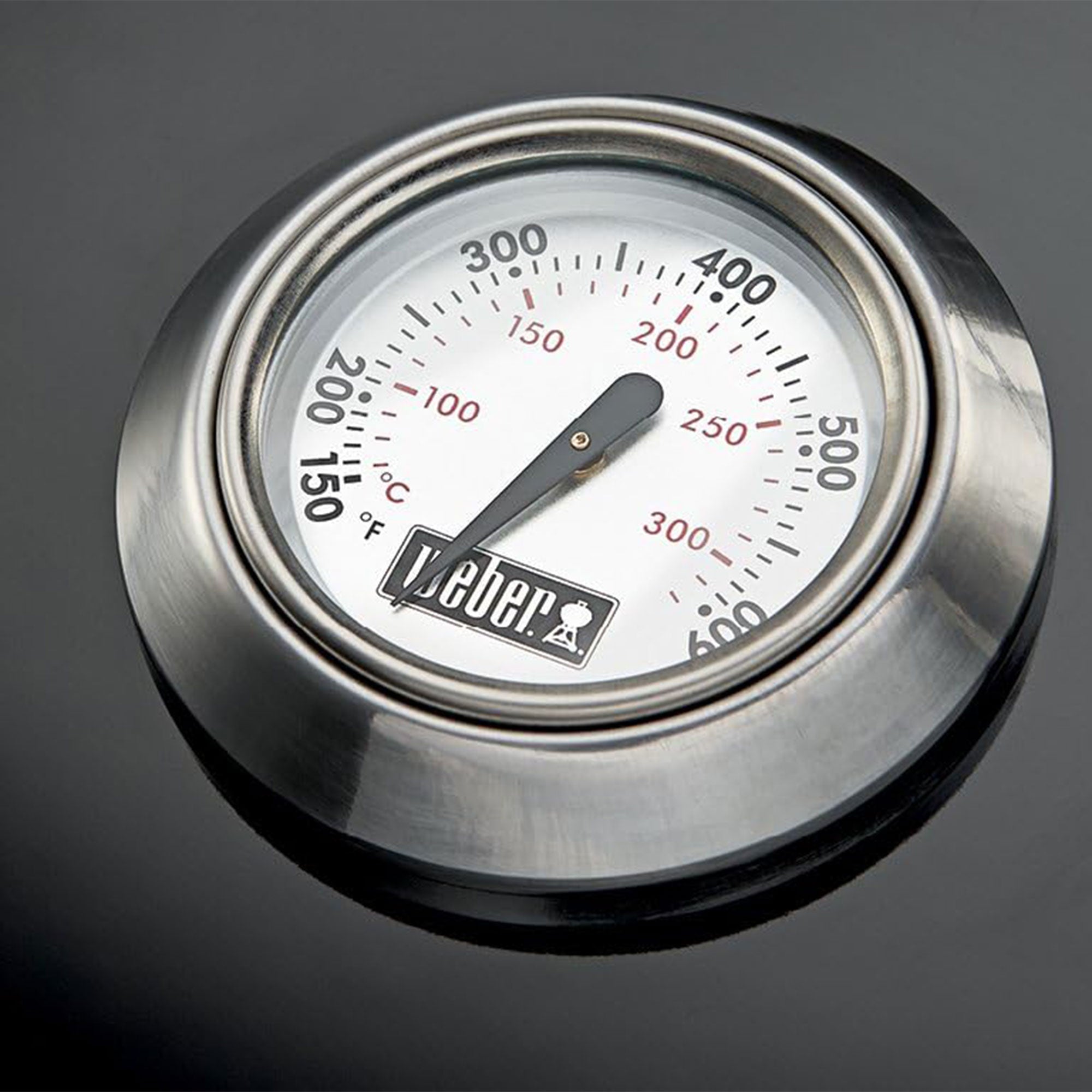 - Porcelain enamel bowl and lid, with a built-in thermometer and heat shield, provide precise cooking control and a cool-touch handle