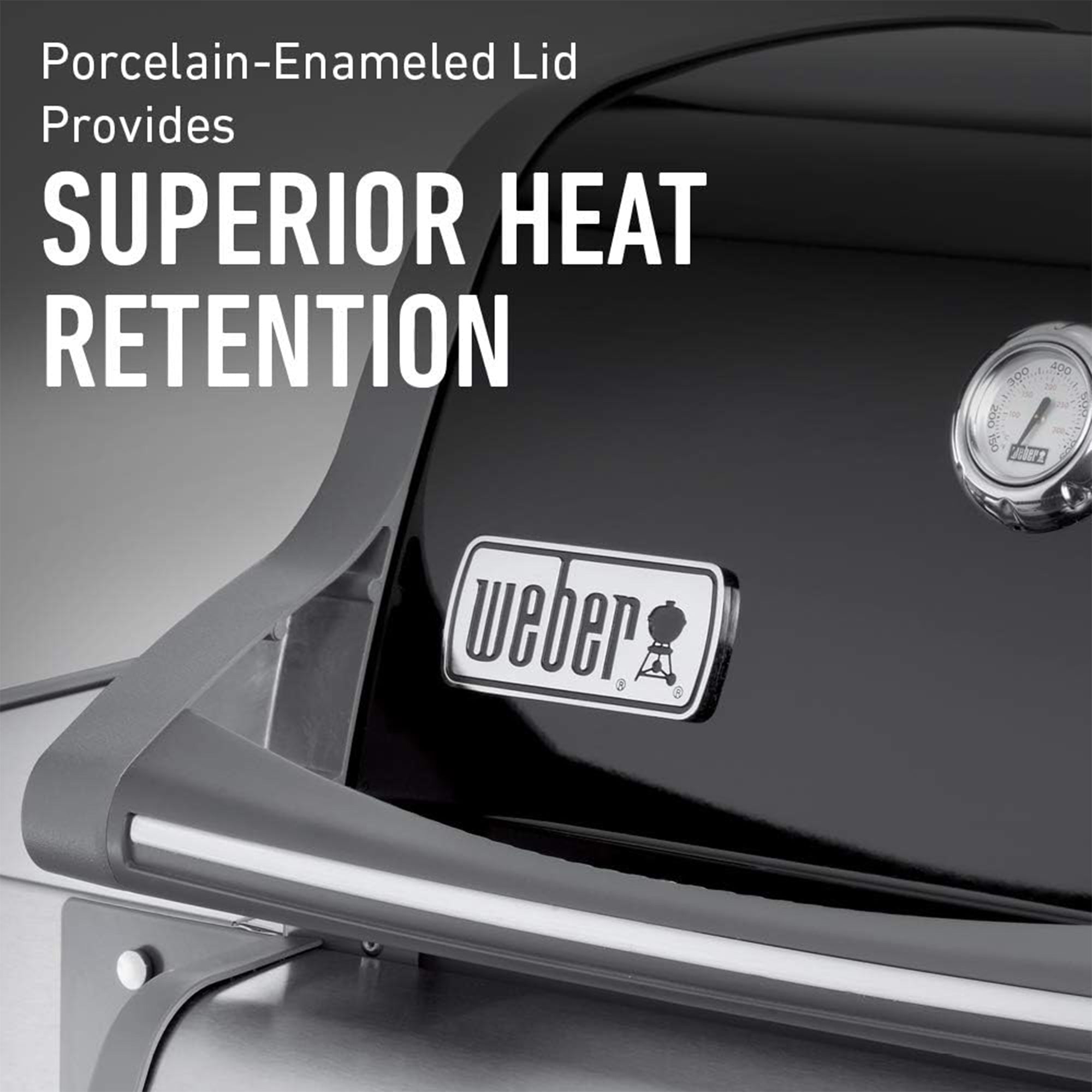 • Sleek, stainless steel lid with center-mounted thermometer offers an upgraded look to your backyard or outdoor patio