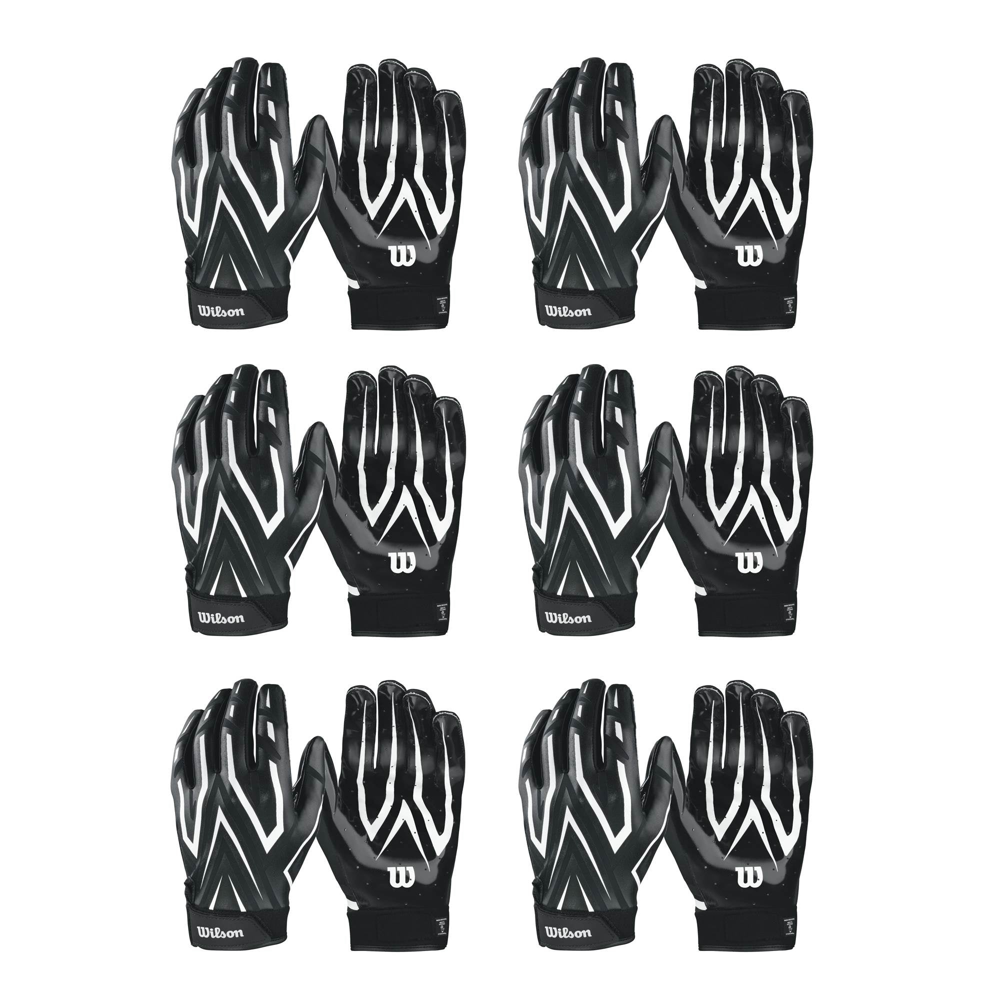 Wilson Black Adult MVP Clutch Skill Football Receiver Gloves, Small (6 Pack)