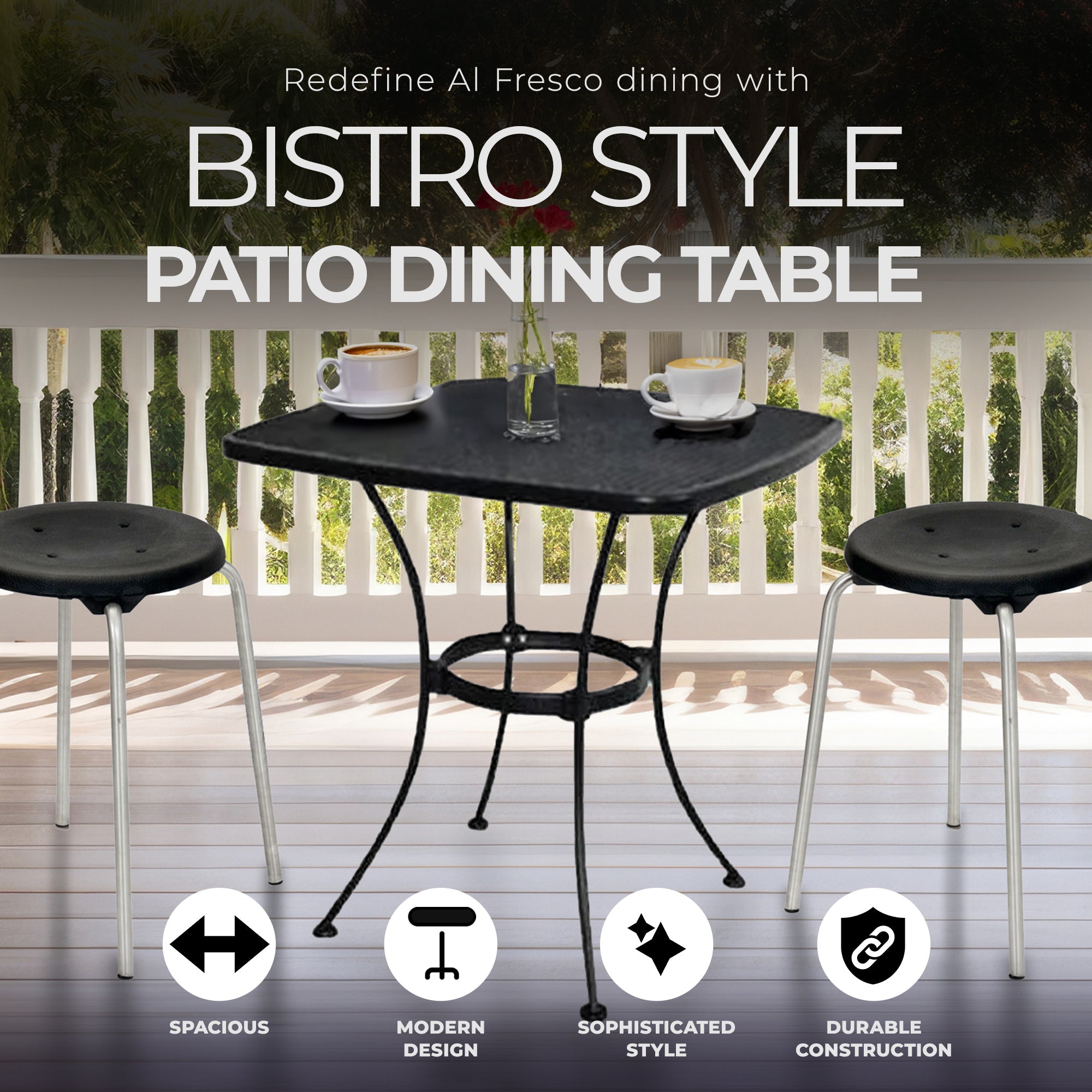 Make every meal a celebration of style, comfort, and lasting memories with the Woodard Uptown Steel Mesh Square Bistro Patio Dining Table.