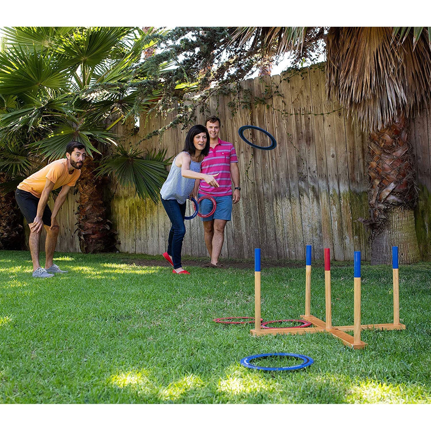YardGames Outdoor Giant Wooden Ring Toss Lawn Game w/ Soft Touch Throwing Rings
