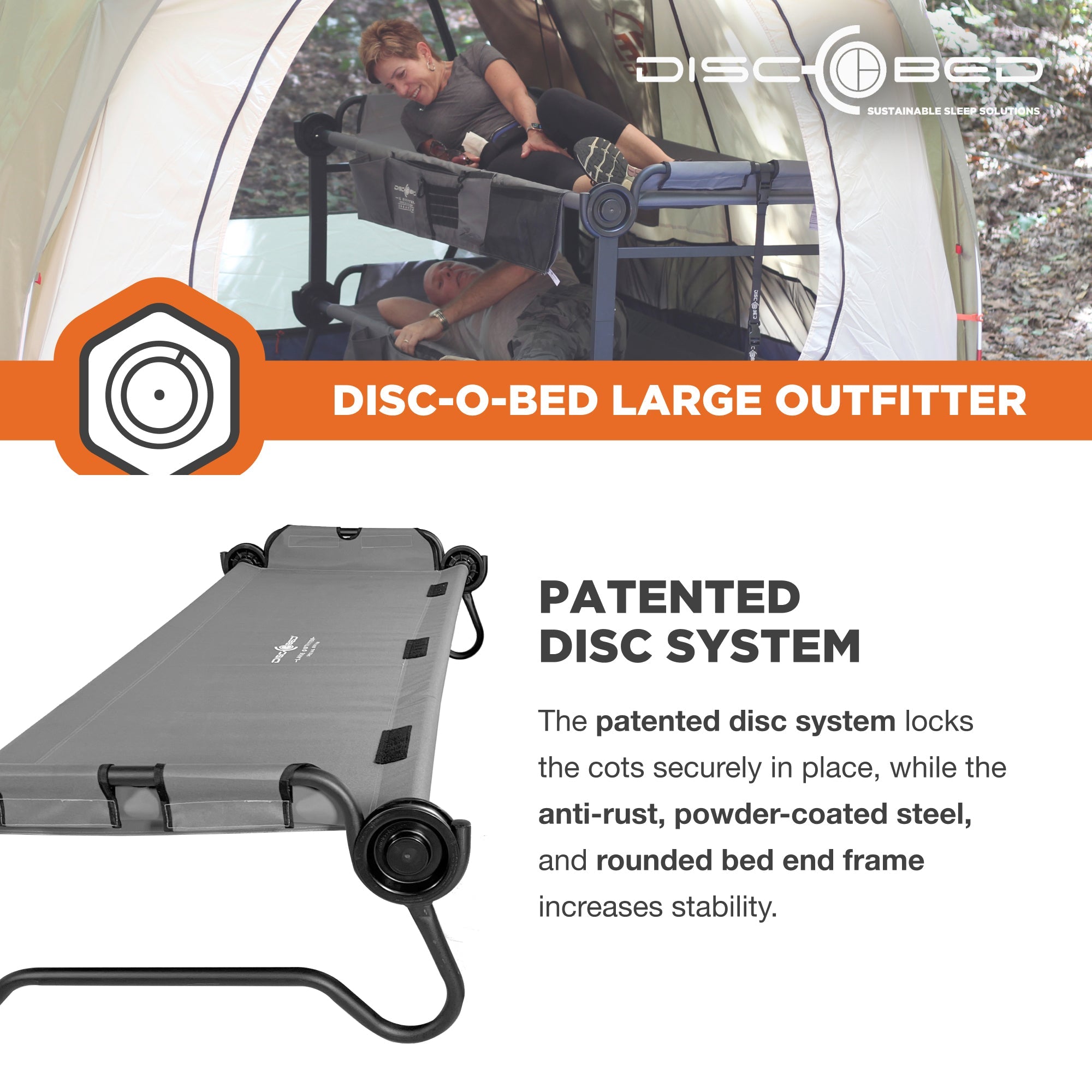 Disc-O-Bed Large Outfitter Bunk Benchable Double Cot w/ Storage Organizers, Gray
