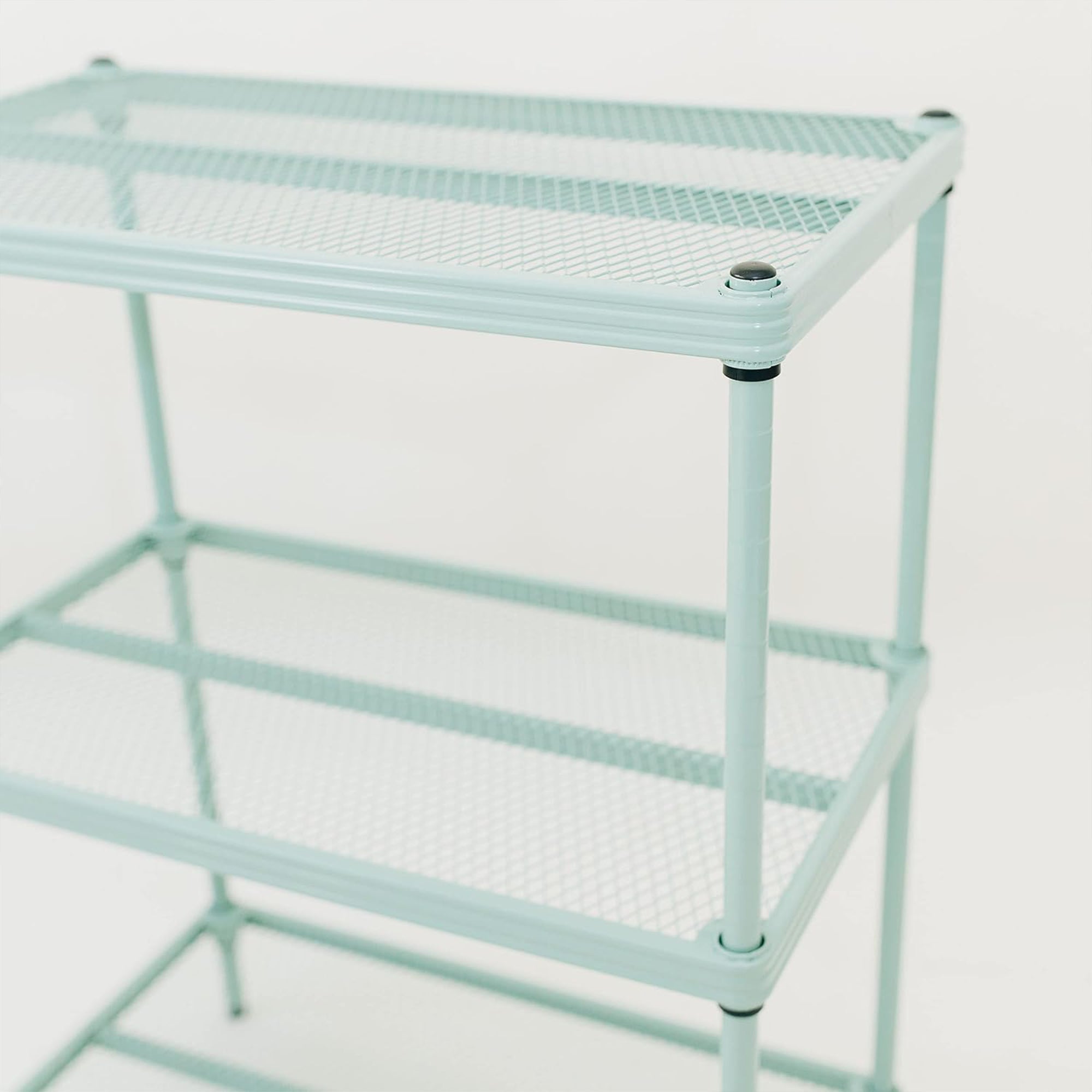Featuring a heavy-duty steel metal mesh design and epoxy coating, each shelf from this standing shelf unit is capable of holding up to 440 pounds. With the expanded metal mesh shelving, this multipurpose display shelf rack will not let bottles, cans, or other small items fall through. The open design allows to you see your items from any angle, great for easy access. Use this shelving rack as a bookshelf, as a display for your favorite home decor, and even for craft storage.